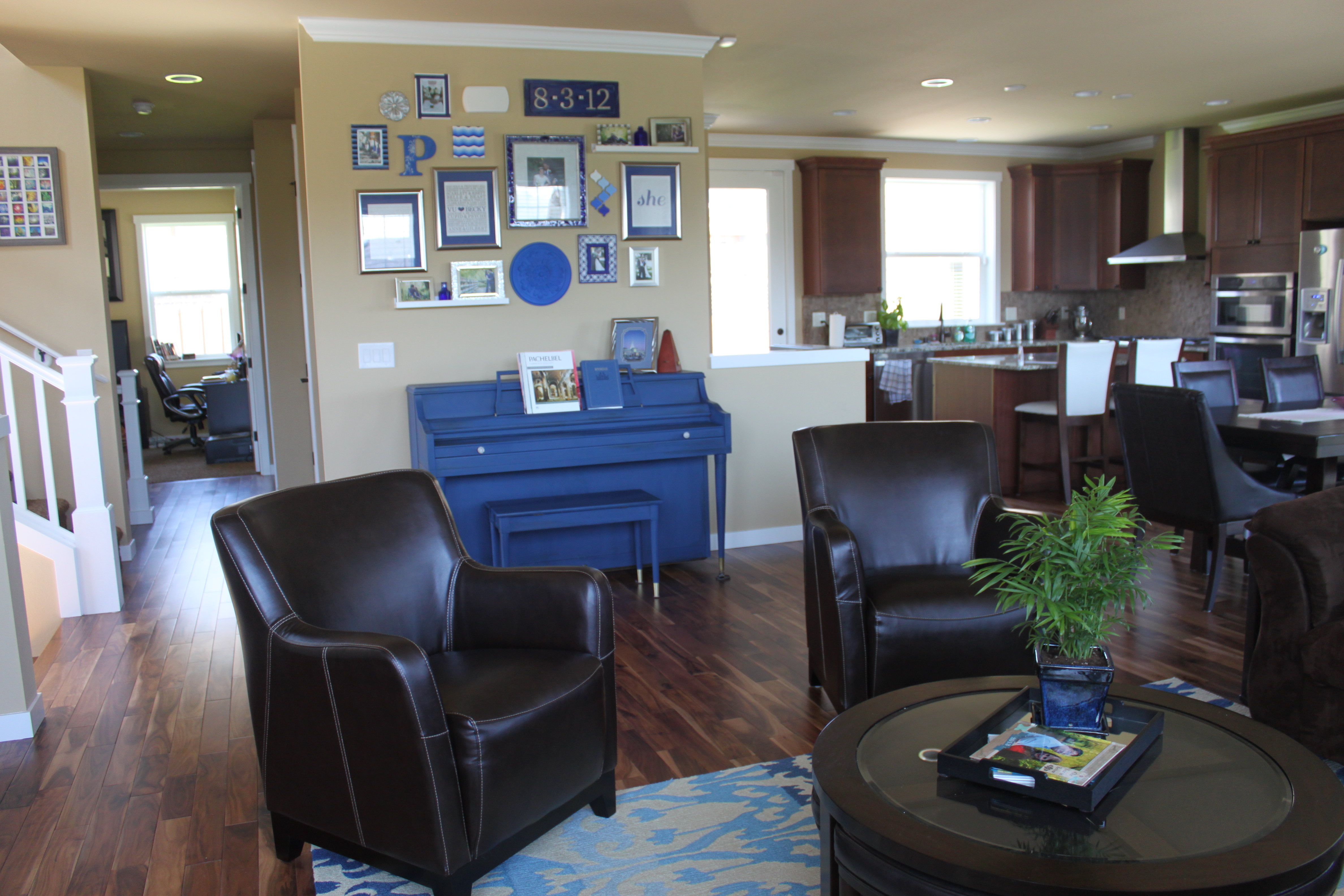 The main living area’s are on the second floor, and all form one large room. We really like this layout (except that I have to always have the dishes done before people come over).