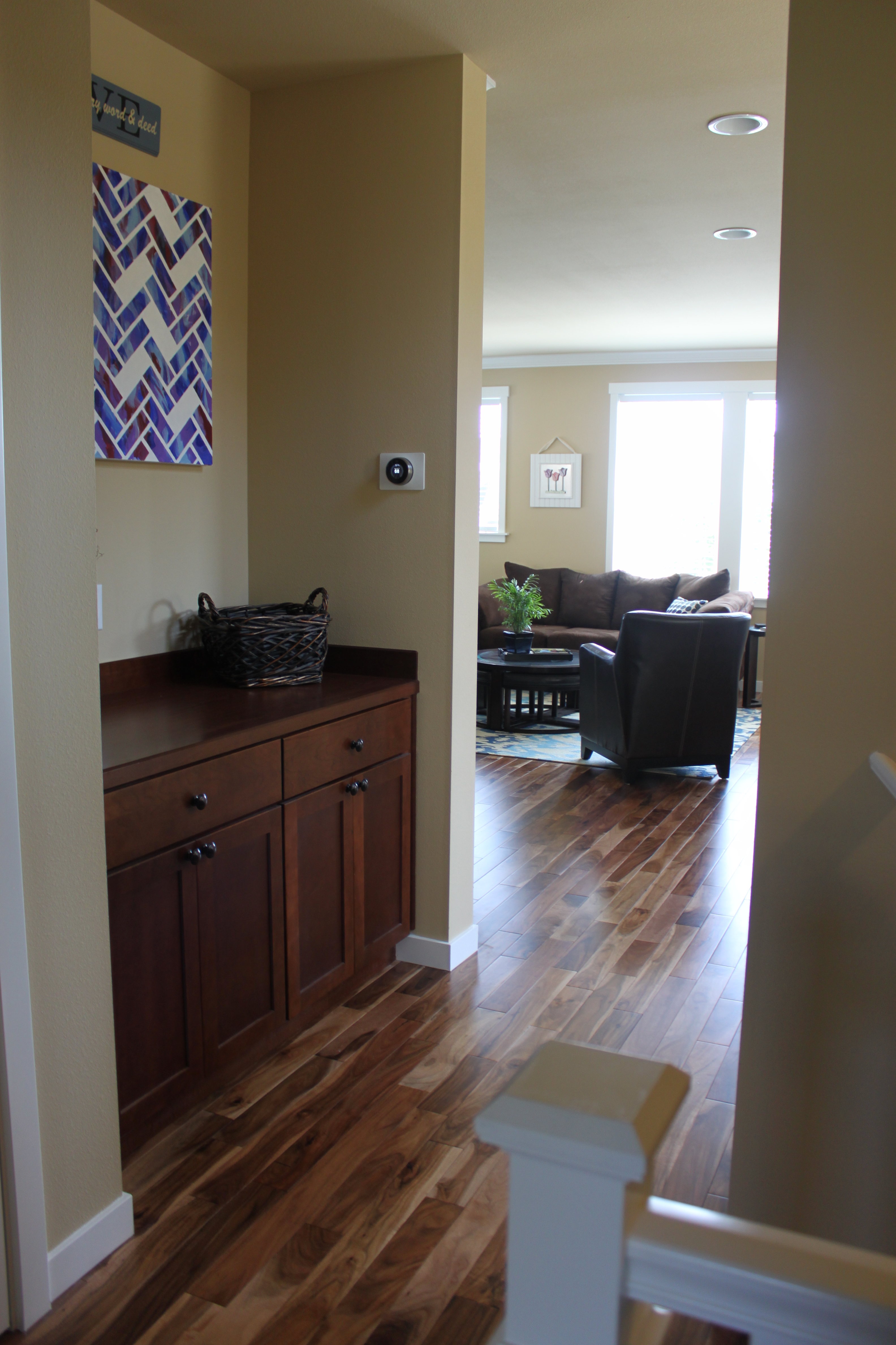 Things with the house are finally mostly finished, and it feels so good to just be at home. Both Vu and I often say how much we love living here. Our latest adventure with home ownership was one that really freaked me out. We had tent caterpillars. I get all creeped out and itchy just thinking about it. Disgusting!!! But it is worth it to be able to have a home we love so much. So finally here is the photo tour. Welcome to our home! 🙂