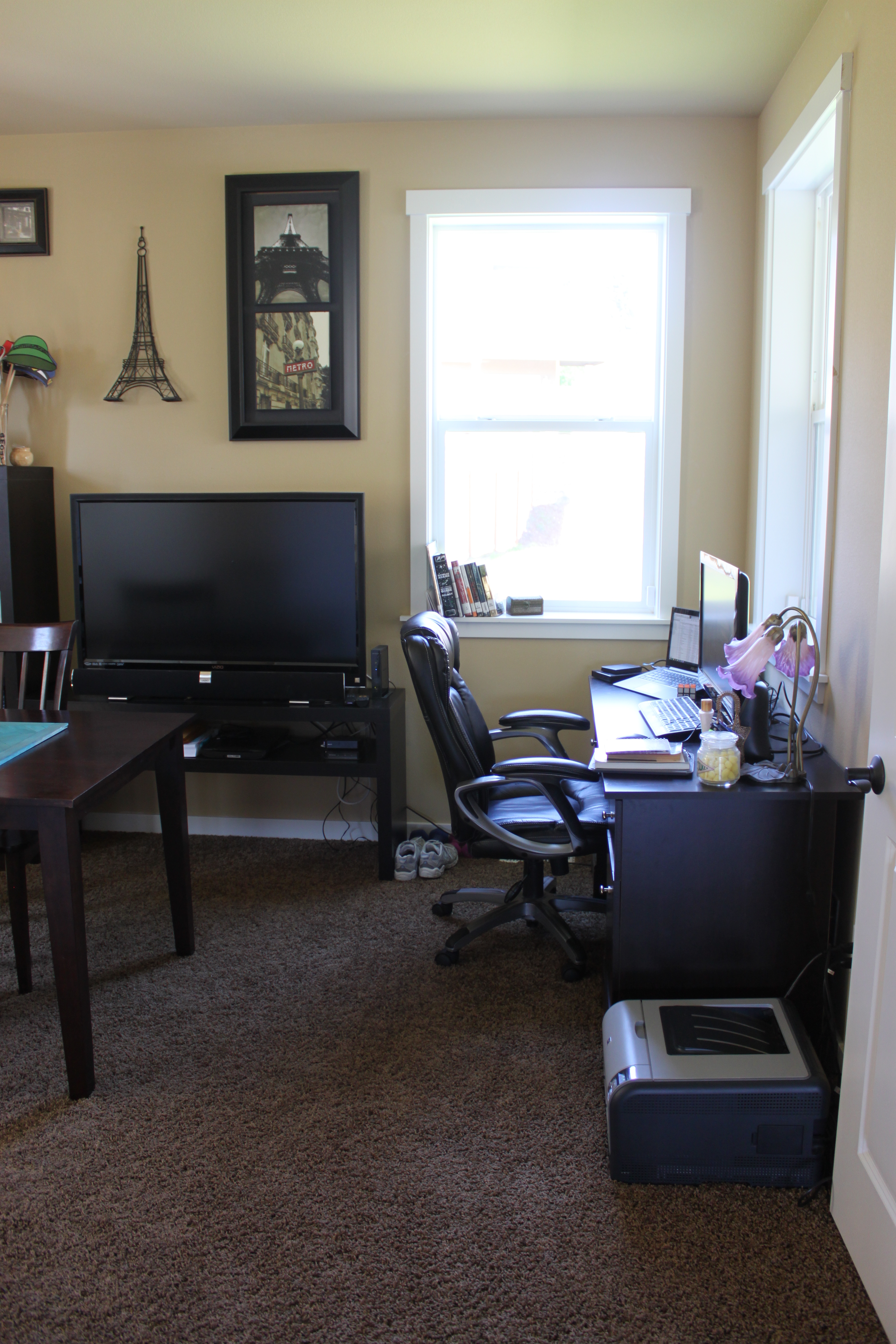 And here is my studio, aka craft room. Where all the magic happens. And where I spend a lot of my time. And where all the Paris stuff goes. Because all of Vu’s Star Wars stuff goes in his room, so all of the Paris stuff goes in my room. It is also on the main floor around the corner from the other living area’s.