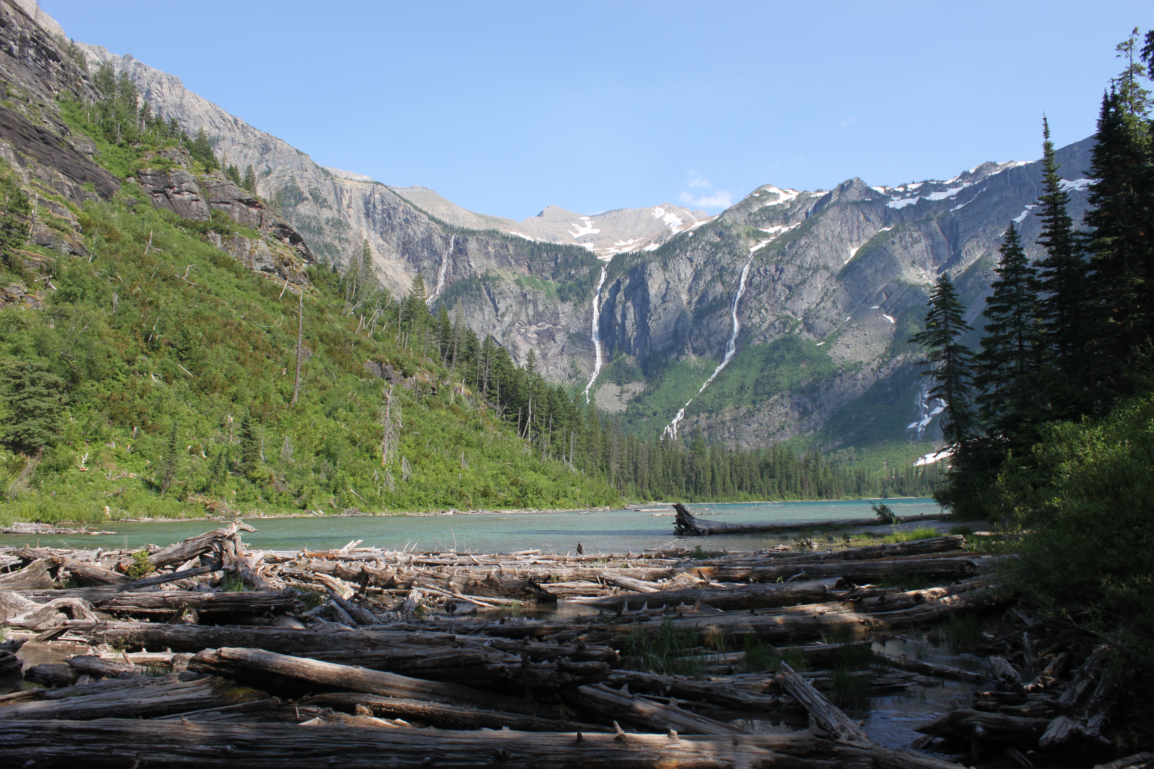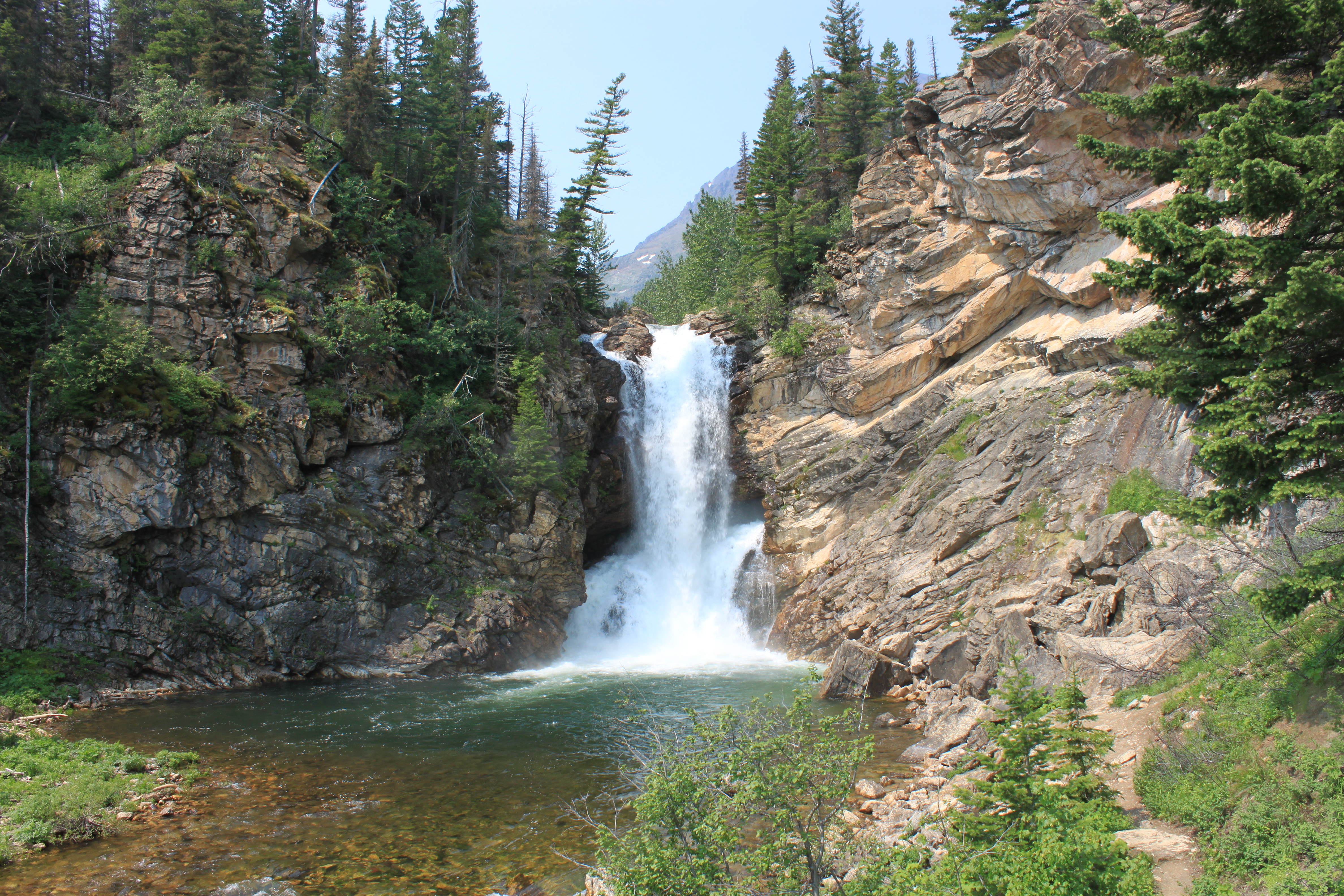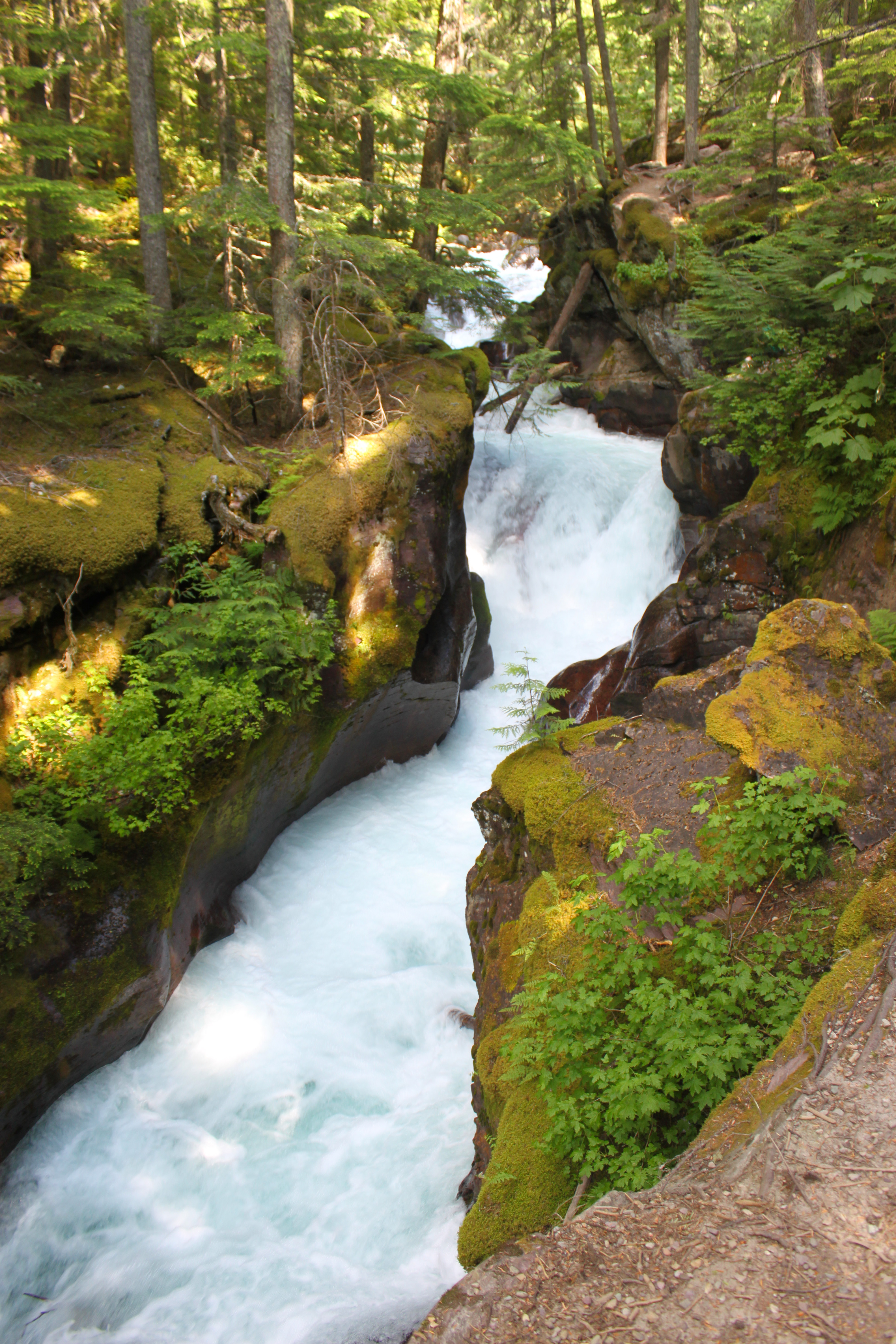 Our first day in Glacier we hiked Avalanche Creek and towards the beginning there is a really cool waterfall, just the first of many I would love. It is on the side of the trail in a ravine. It’s really more a series of small waterfalls as the river runs through the ravine.