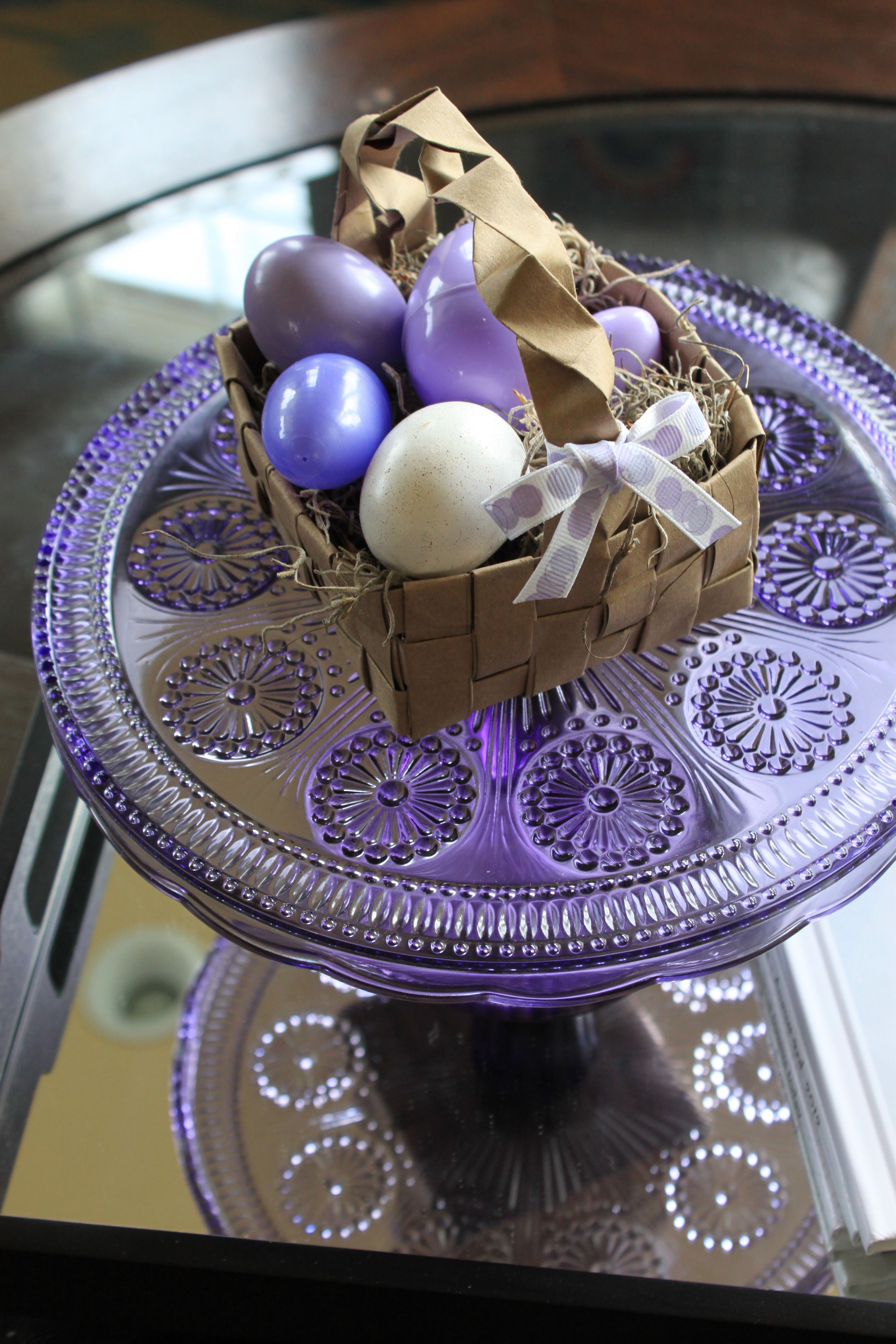 I made this basket out of paper bags, following this tutorial and filled it with the nest filler and eggs as well. I love this cake plate. I got it at local home decor store, called “Lucky Home” (If you live in the area you should totally check it out. It’s in Gilman Village in Issaquah. They have another store called “Lucky You” also in Gilman Village).