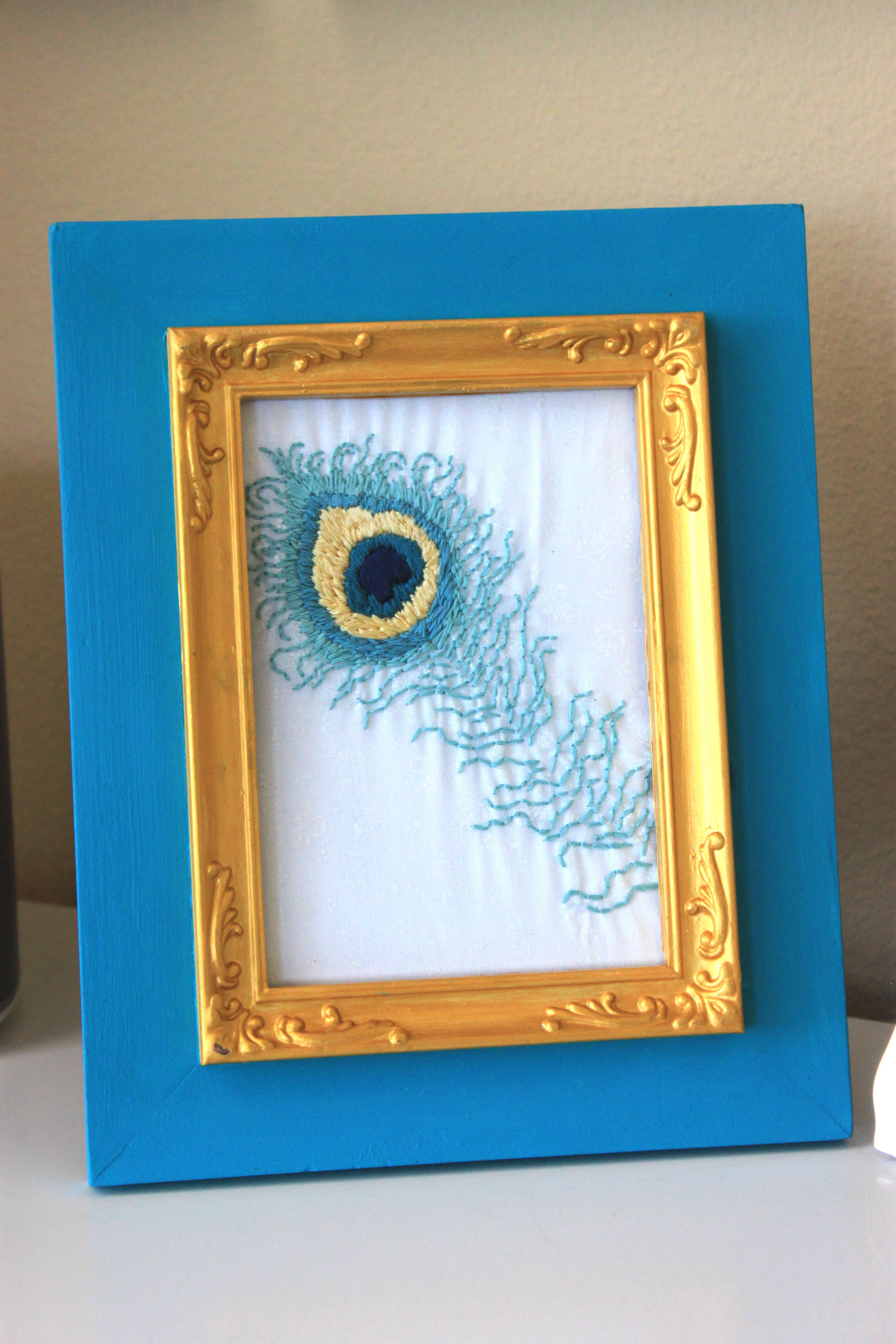 I made another embroidery, and I honestly thought it wasn’t going to turn out, but was actually very happy with the result. I thought it came out much better than I had imagined. Much better than the embroidery I made for February. I found a double frame from Michael’s or Hobby Lobby, can’t remember which one, and painted the bottom part turquoise and the inside top part gold, to hold the embroidery.
