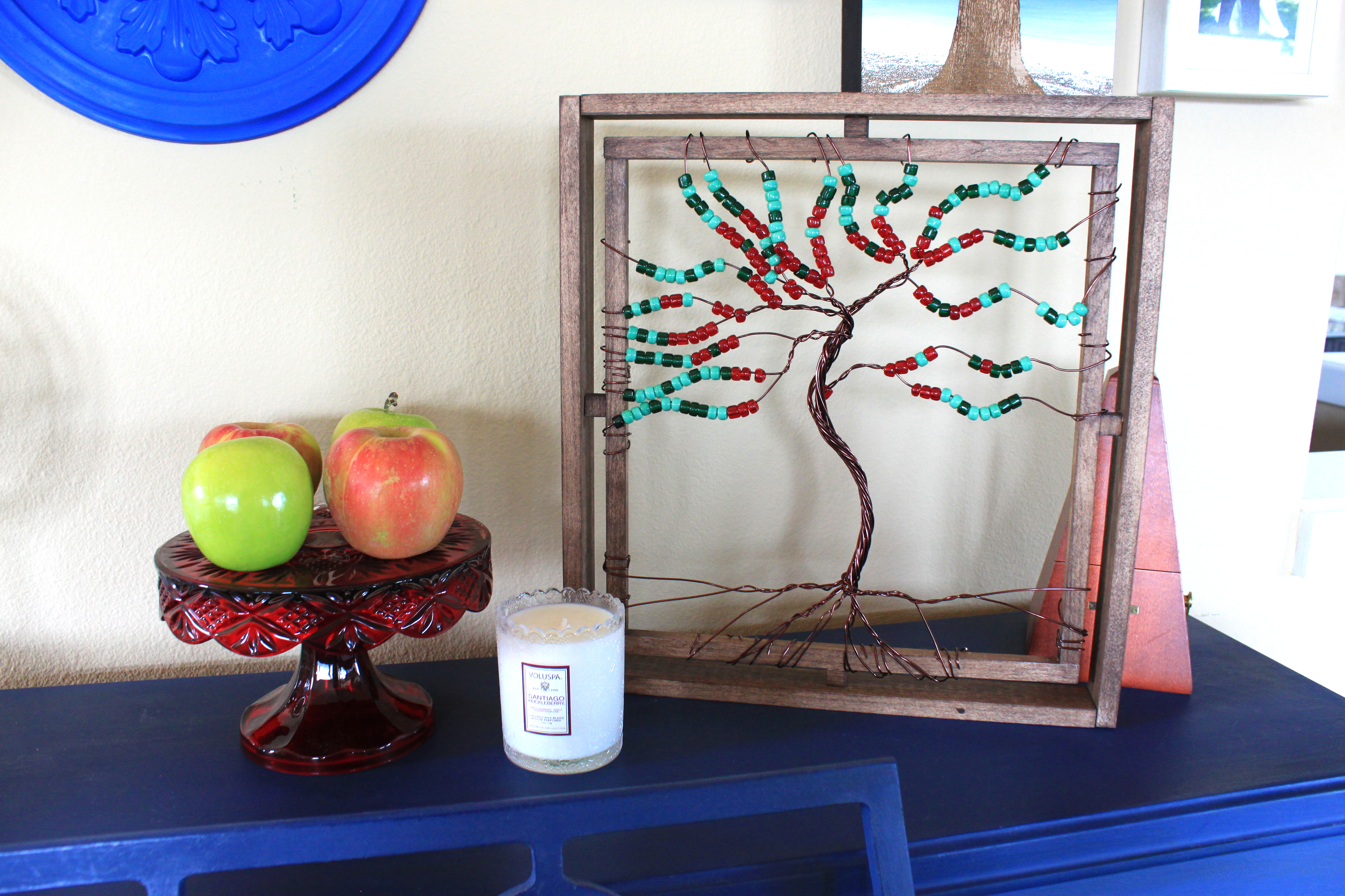 I made a wooden framed, wire and bead tree of life to sit on the piano. I was planning on making it smaller, and I think I would like it more if it were. I might redo it next year. Also I need a nail gun before I do it, because it was the biggest pain to get the thing to hold together with wood glue, and I tried nailing it afterwards and it just kept falling apart. It was super annoying.