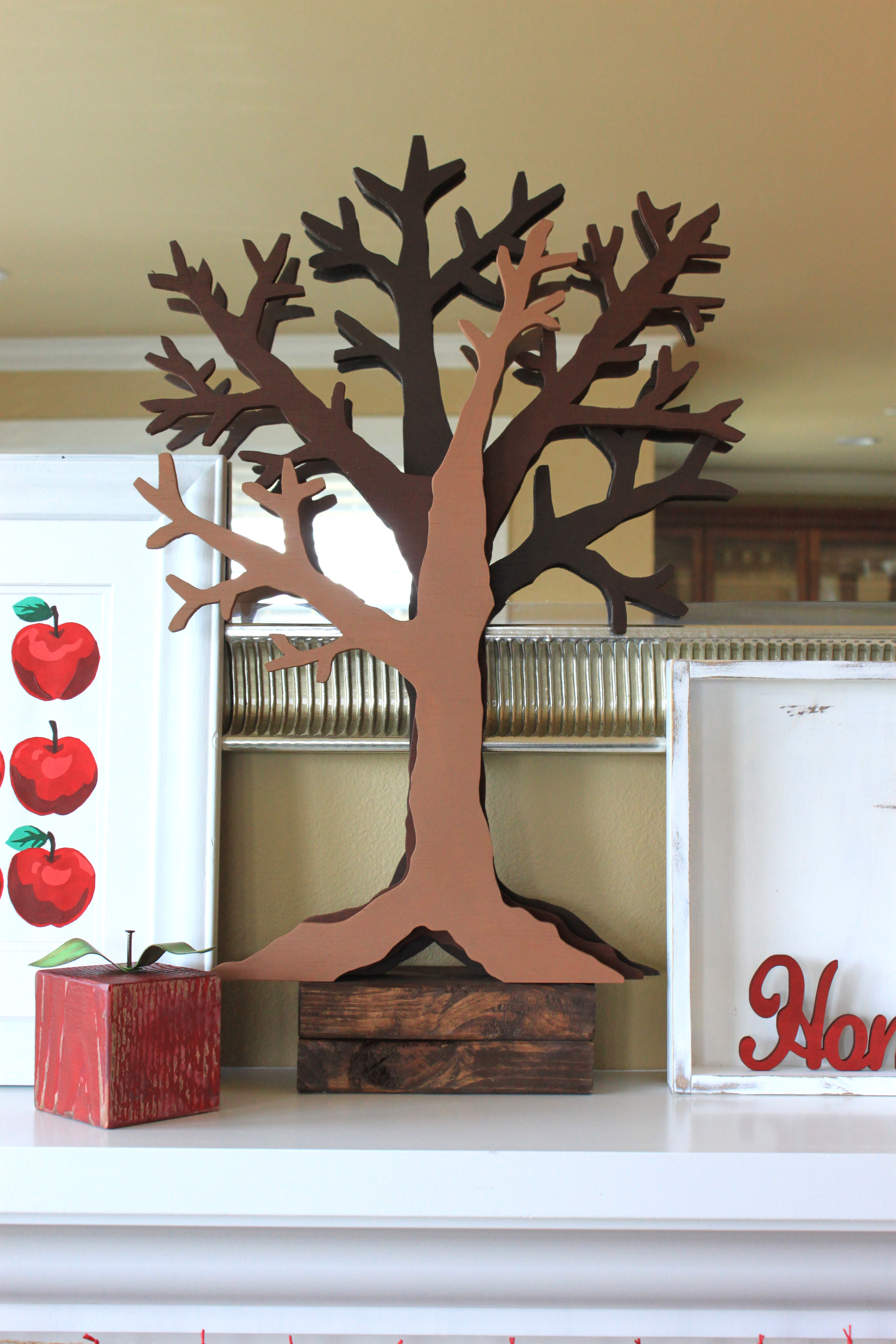 The first thing I decided to make was what I like to call a puzzle tree. I had the idea for the master bedroom and wanted to make a tiny one for the shadowbox over the bookcases, but I still haven’t gotten around to it. I wanted to take multiple pieces of wood and cut just a couple of big branches out of each one, so when you put them all together they make the whole tree with a little bit of 3D added in.