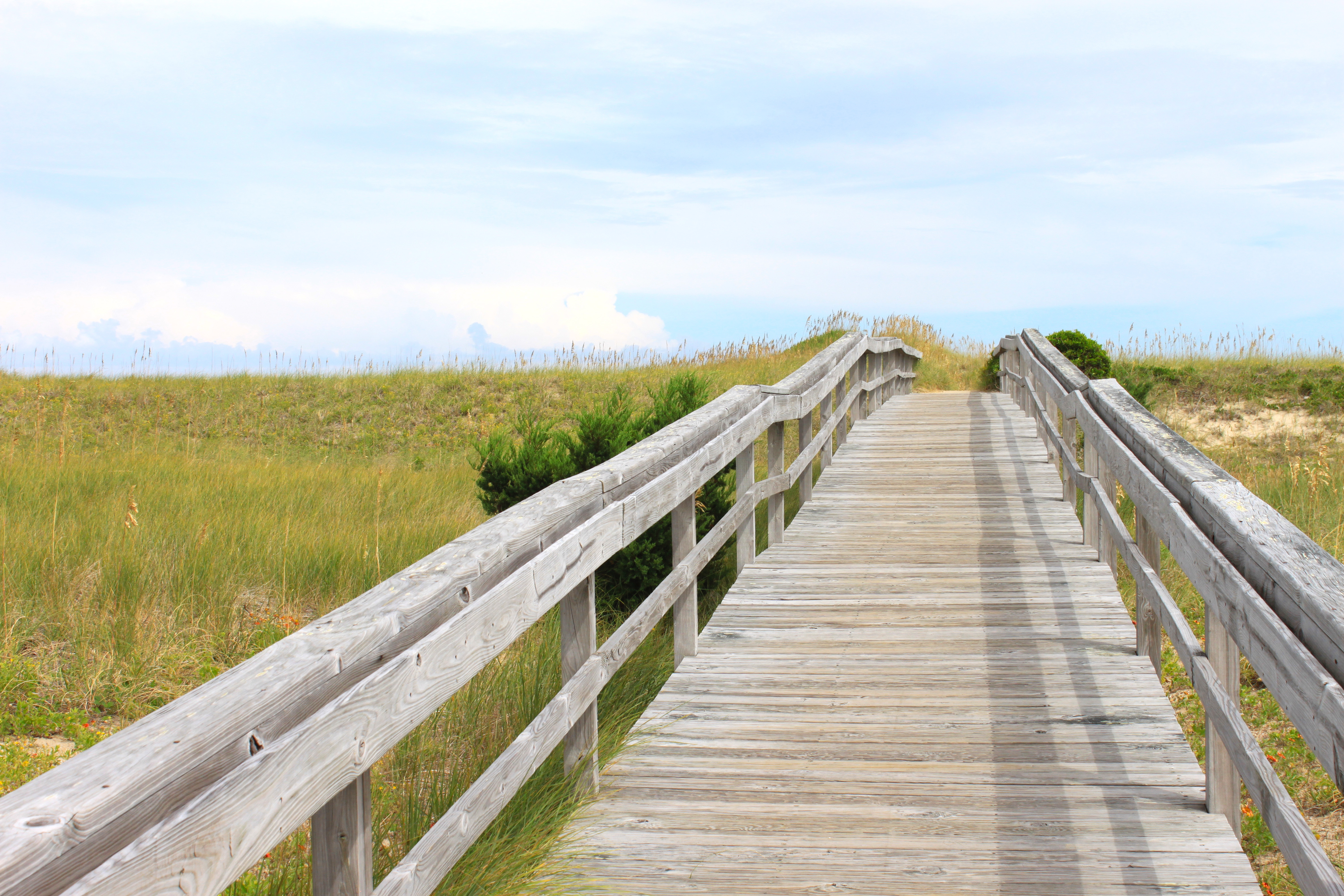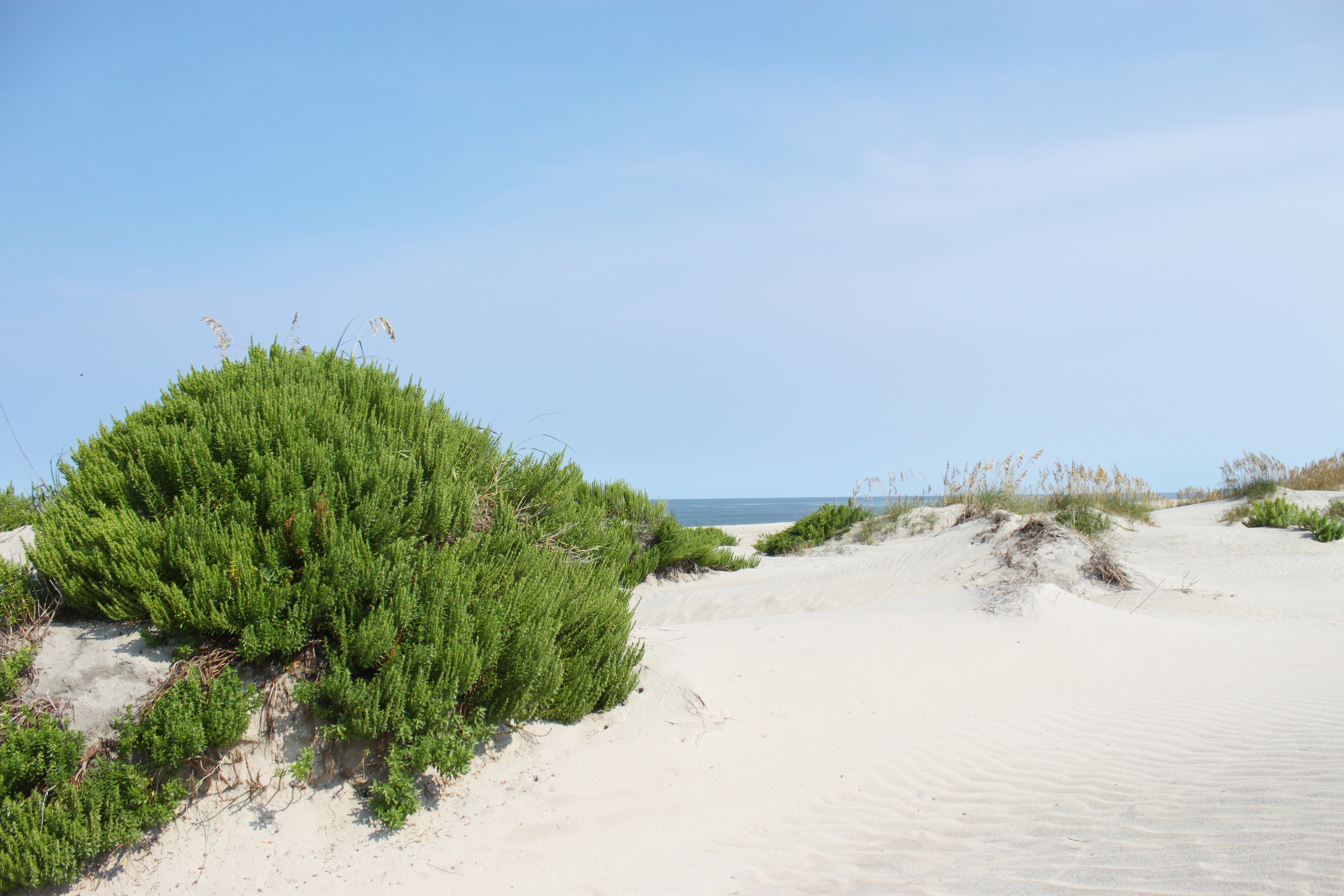 We were going to go over to the Island of Ocrakoke, but you have to take a ferry, and it was about a 2 hour wait one way, so we just headed back up. We stopped at some of the sand dunes on the way back, and the sand was so hot. I love the green brush in the sand on the ocean. So pretty.