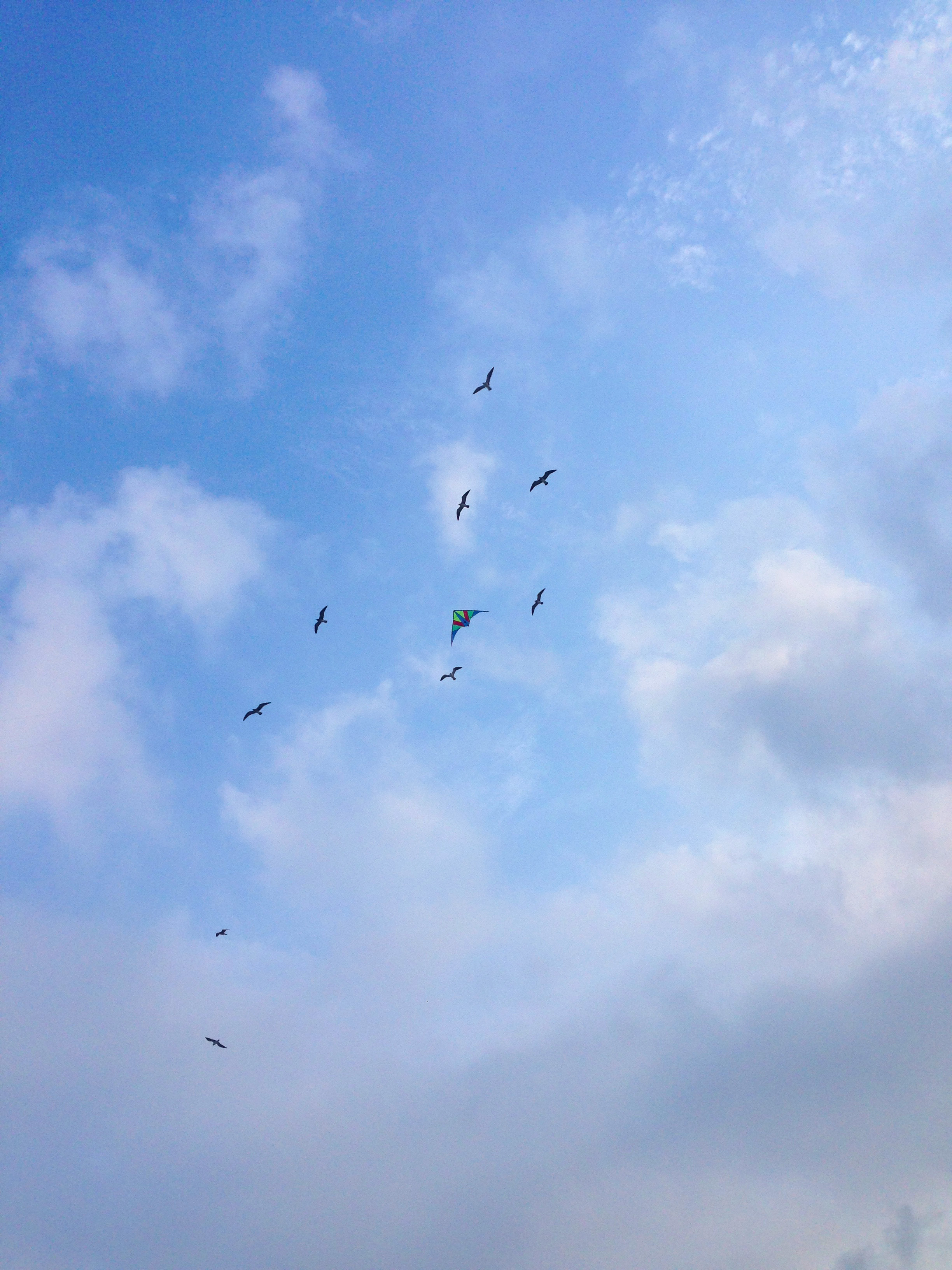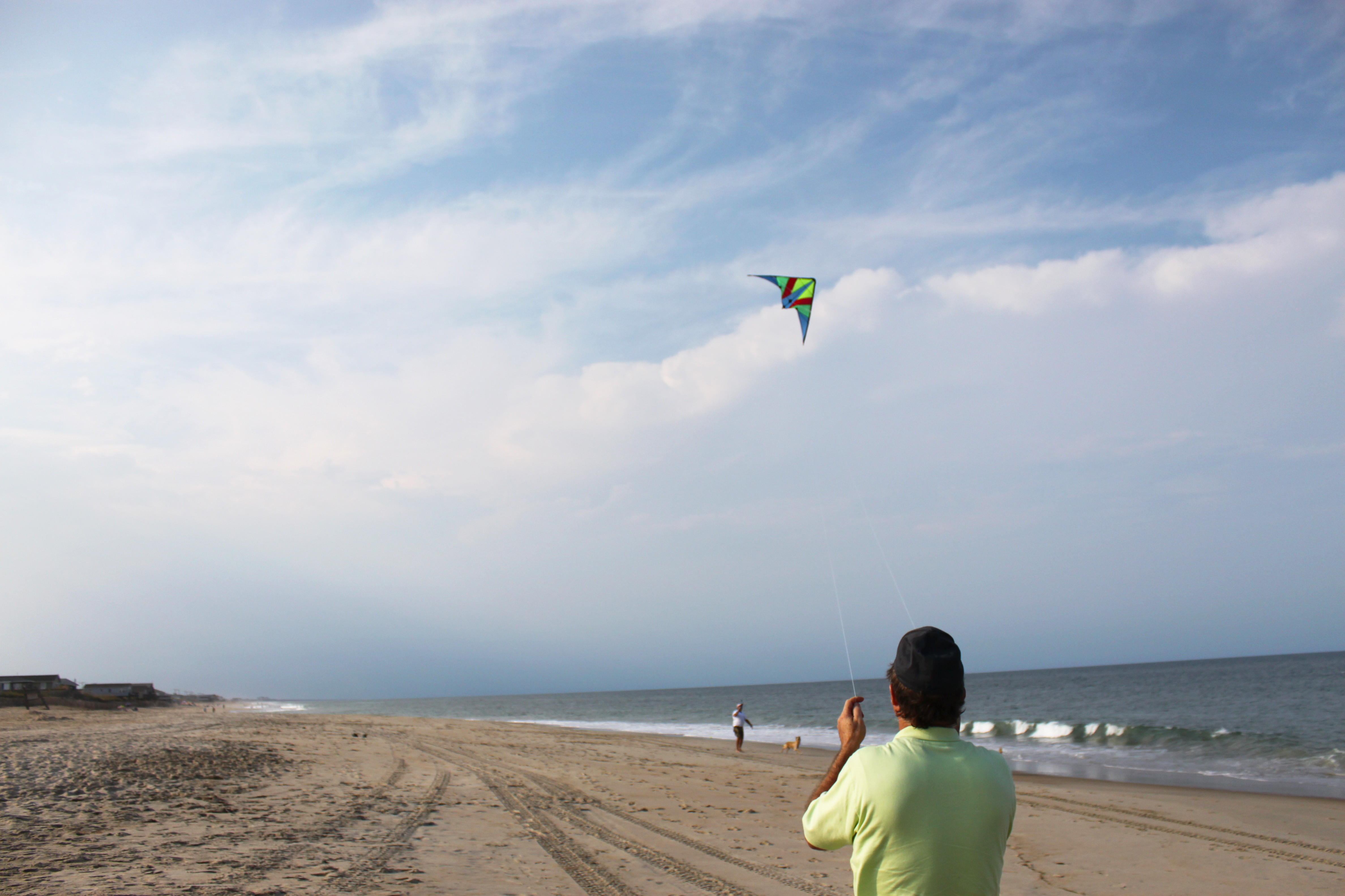That afternoon we sat on the beach and read and Dad flew his kite some more. The seagulls were really attracted to it for some reason, and hovered right around it for quite a while. Another storm was heading it, so it was much more windy this time, a lot more fun for him.