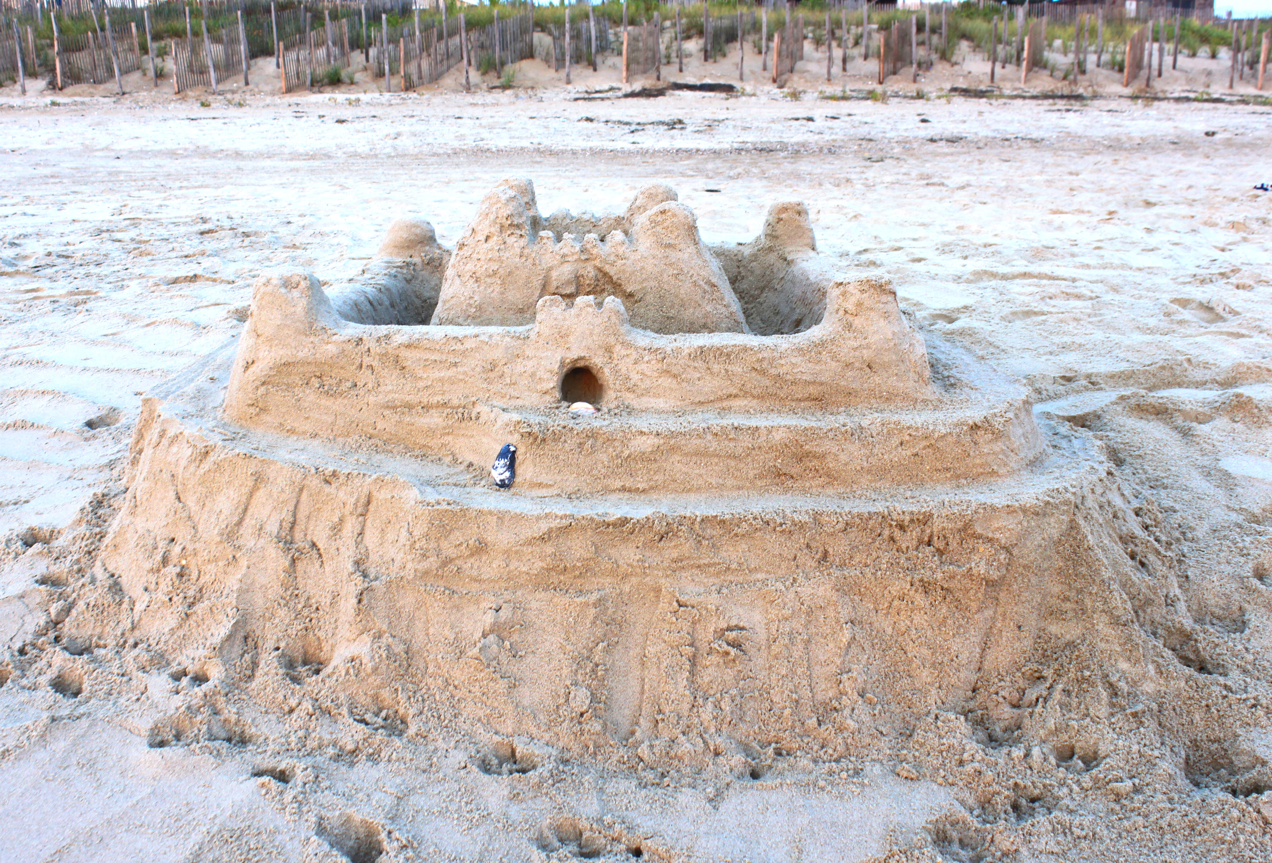 Then Dad and I (with a little bit of help from Rachel at the beginning hauling water back and forth) built a sandcastle.