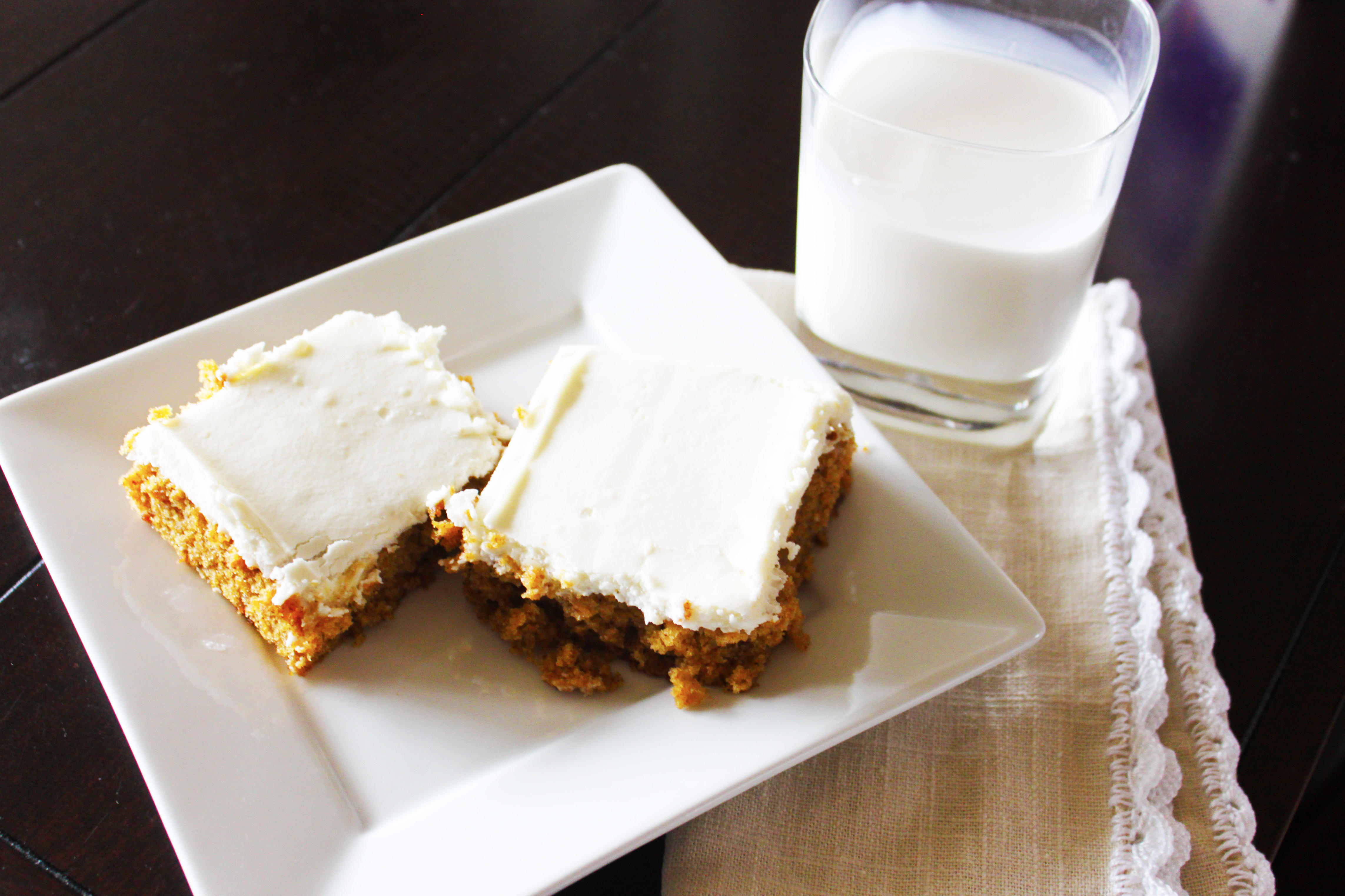 Many, many years ago a coworker gave me this recipe. For pumpkin bars with a cream cheese frosting. And let me tell you, they are so good. Every year since then, the holiday season beginning for me on October 1st, that I love so much, is not complete without making these at least once. I don’t even really like very many foods with pumpkin. But I love these so much. And now I am sharing this source of joy with you. I hope you enjoy them as much as I do.