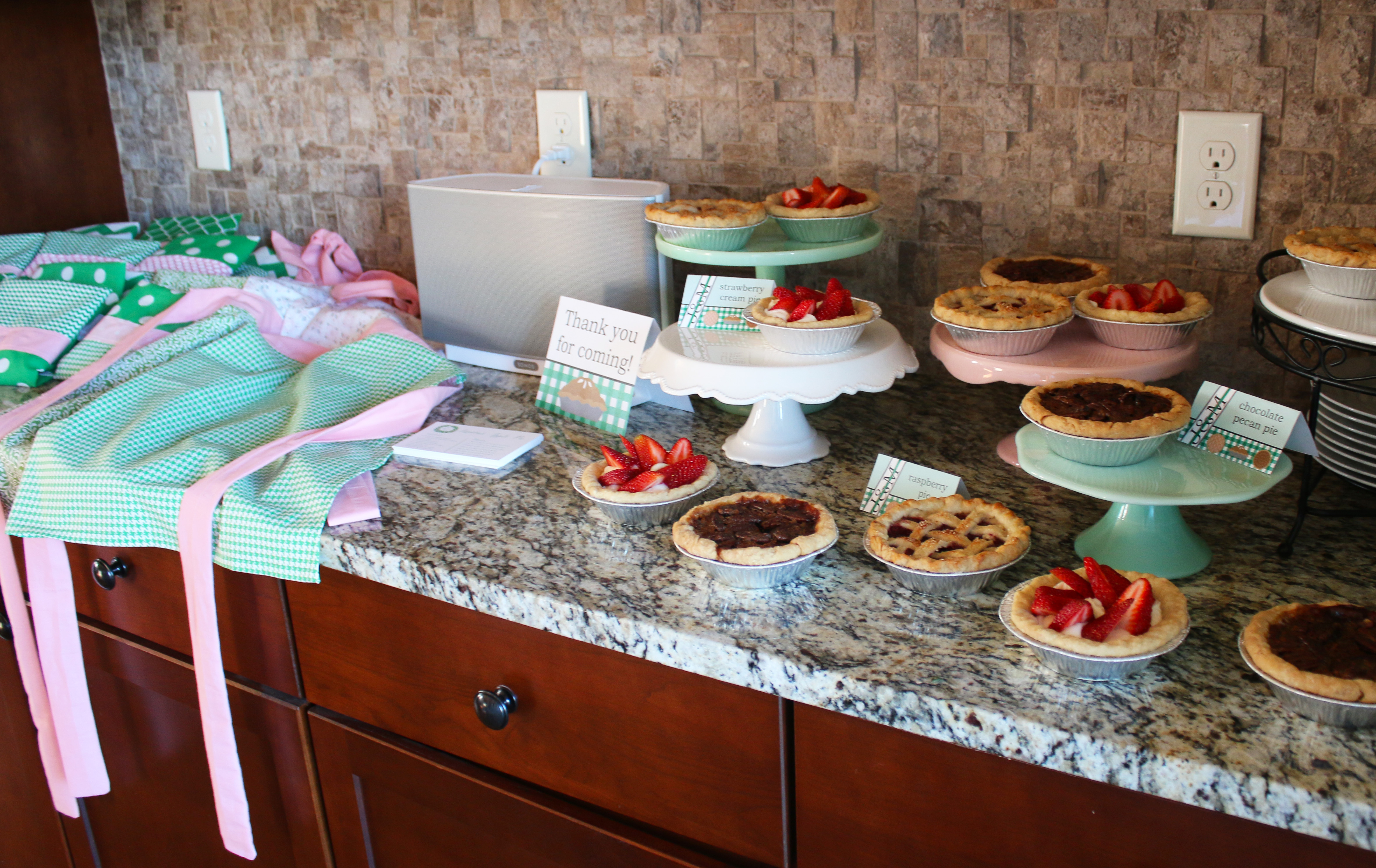 Most of the guests with our aprons and mini pies! Congrats Jen! We are all very happy for you!