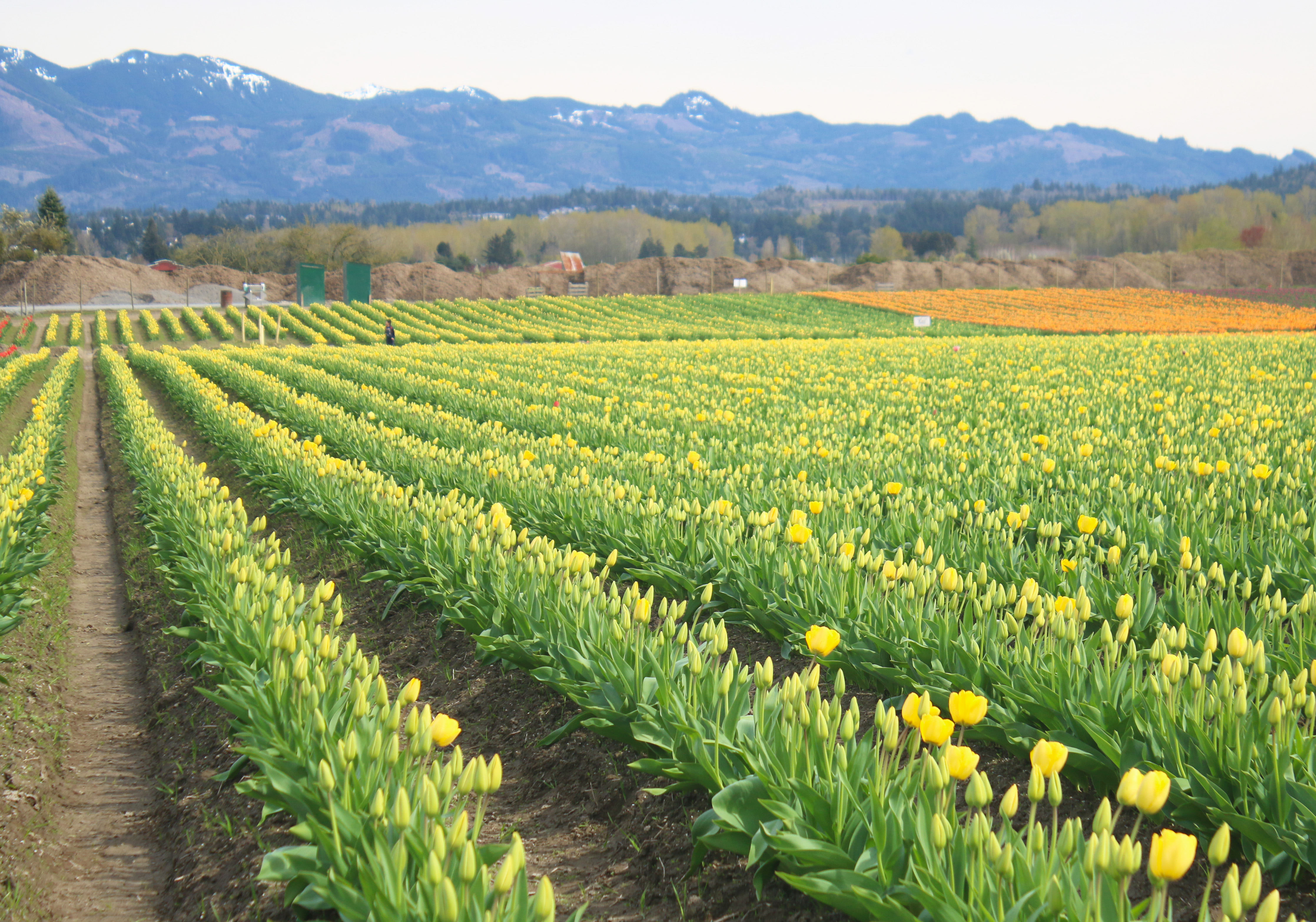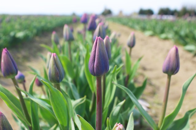 Monday’s forecast was rain, so there were only a couple of hours in the morning that it was supposed to be sunny, so we went in the morning. It worked out pretty well because it started to rain when we were walking back to the car. It was good we went when we did because I think about half of the blossoms had already fallen off. It was so quiet and peaceful and beautiful! Tuesday however was sunny all day. And since it is raining the rest of the week, everyone else decided to go as well. There were a lot less tulips blooming than the last couple of years I have gone because of the longer, colder winter that we have had this year, but I think the mixed full blooms with the closed buds actually is really pretty too. I probably wouldn’t feel that way if there was no blooms though, because I mean those fields of color!!! 🙂
