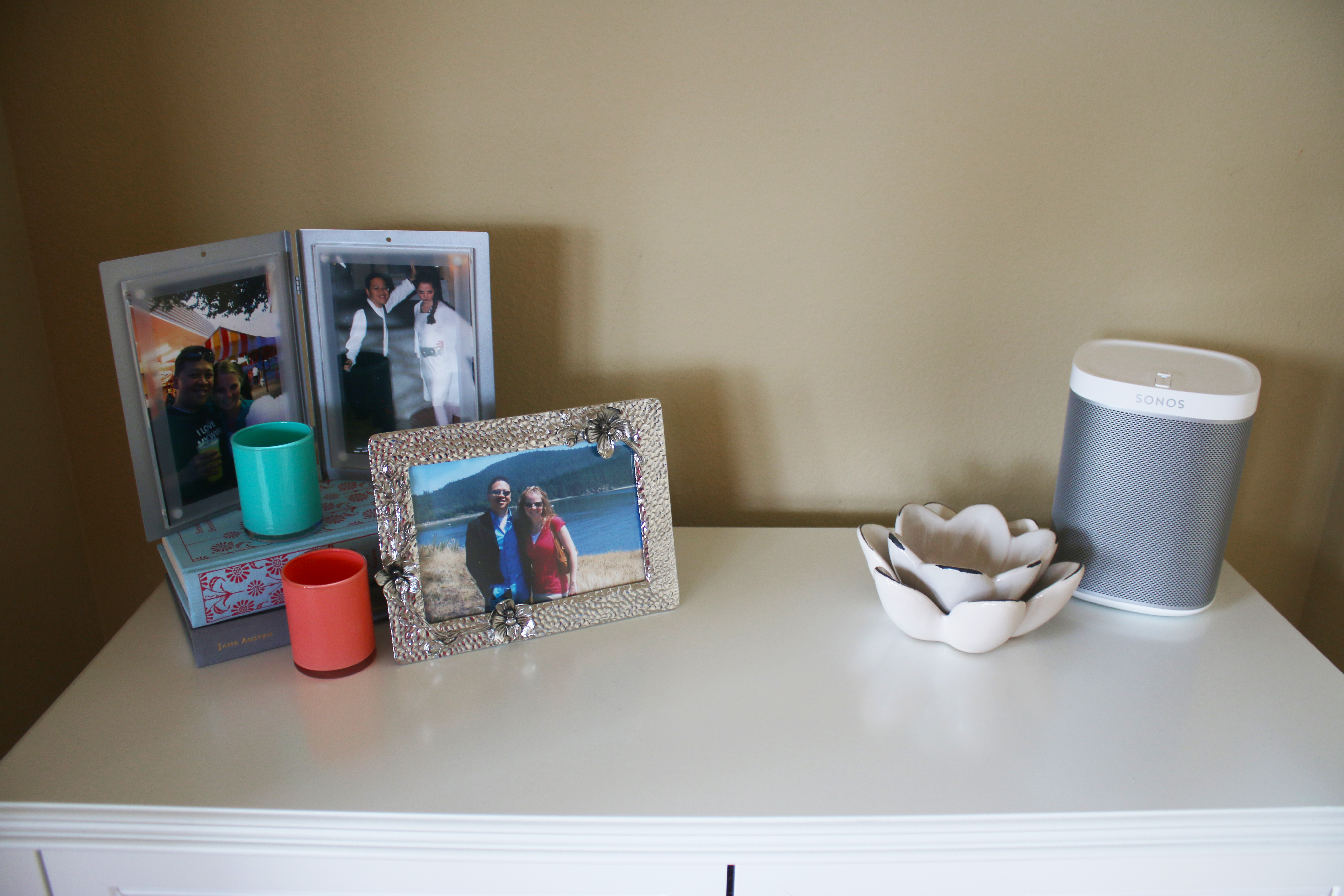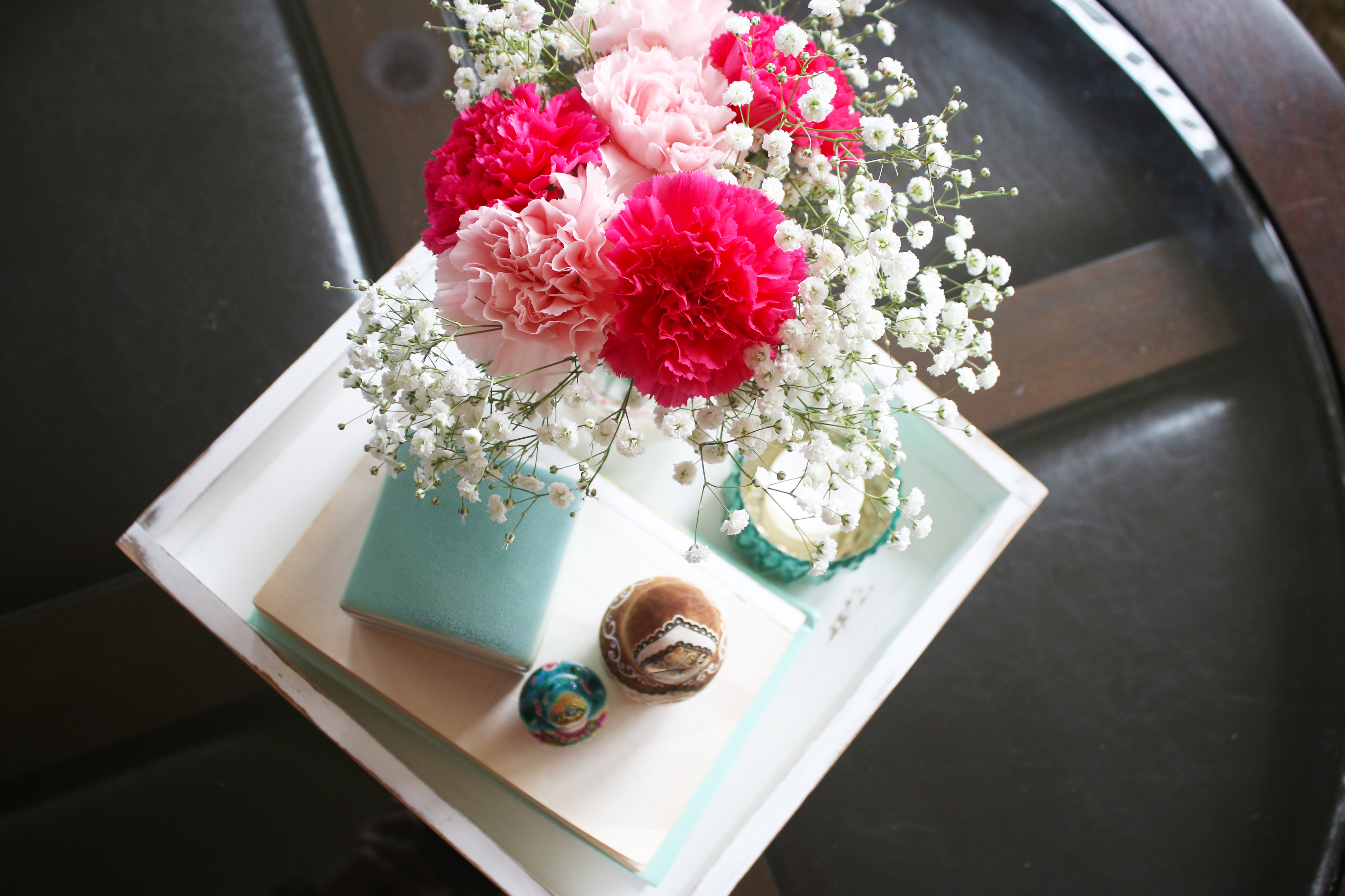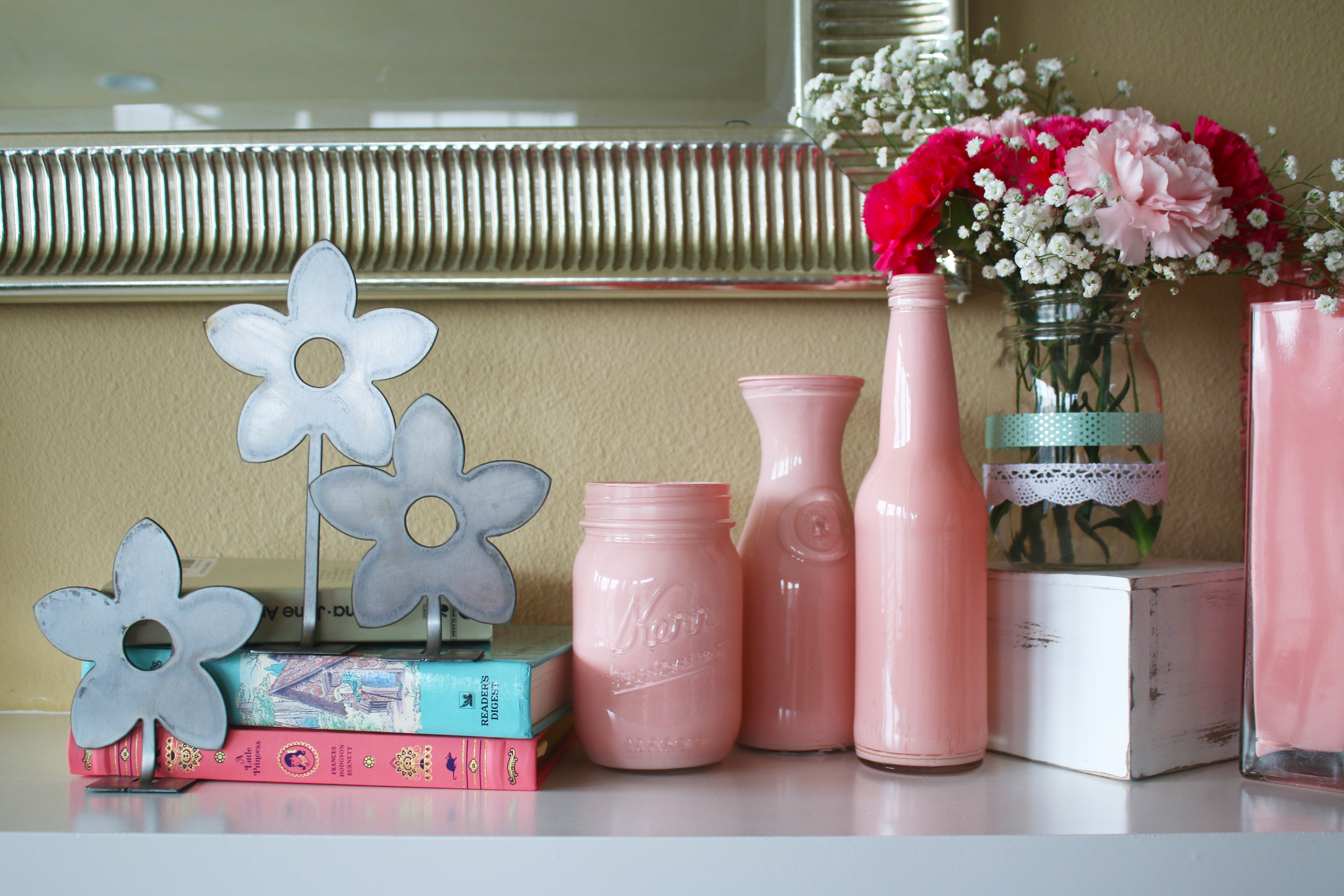 This April has been much more rainy and overcast compared to the last few years, but it is supposed to start getting a little more sunny next week which I am really looking forward too. This month’s decorations are helping make it feel like spring inside, even if it is slow in coming outside. I love all the teal/mints and coral/pinks. I made the rustic white frame that is on the mantel at my church’s Super Saturday craft day last Saturday, and reprinted the pink floral print I designed to fit it. I was also excited to put out the new metal flowers my friend Joella gave me, because you know I just love metal decor elements. I covered some jars with washi tape, lace and twine for the flowers, and printed a few pictures of the UW cherry blossoms to hang in the magnetic pictures frames I made last month. And then another one of my favorites this month are the little Matryoshka dolls on the coffee table. I have about 80 of them, and my twin sister has one to match each one, a tradition that was started with my grandma and her twin sister, who had almost 400 each when they died. We have a few that all 4 of us have/had. They are a fun little personal touch, and these are a couple of my favorite ones. That little one has 10 stacked inside, they go so tiny.