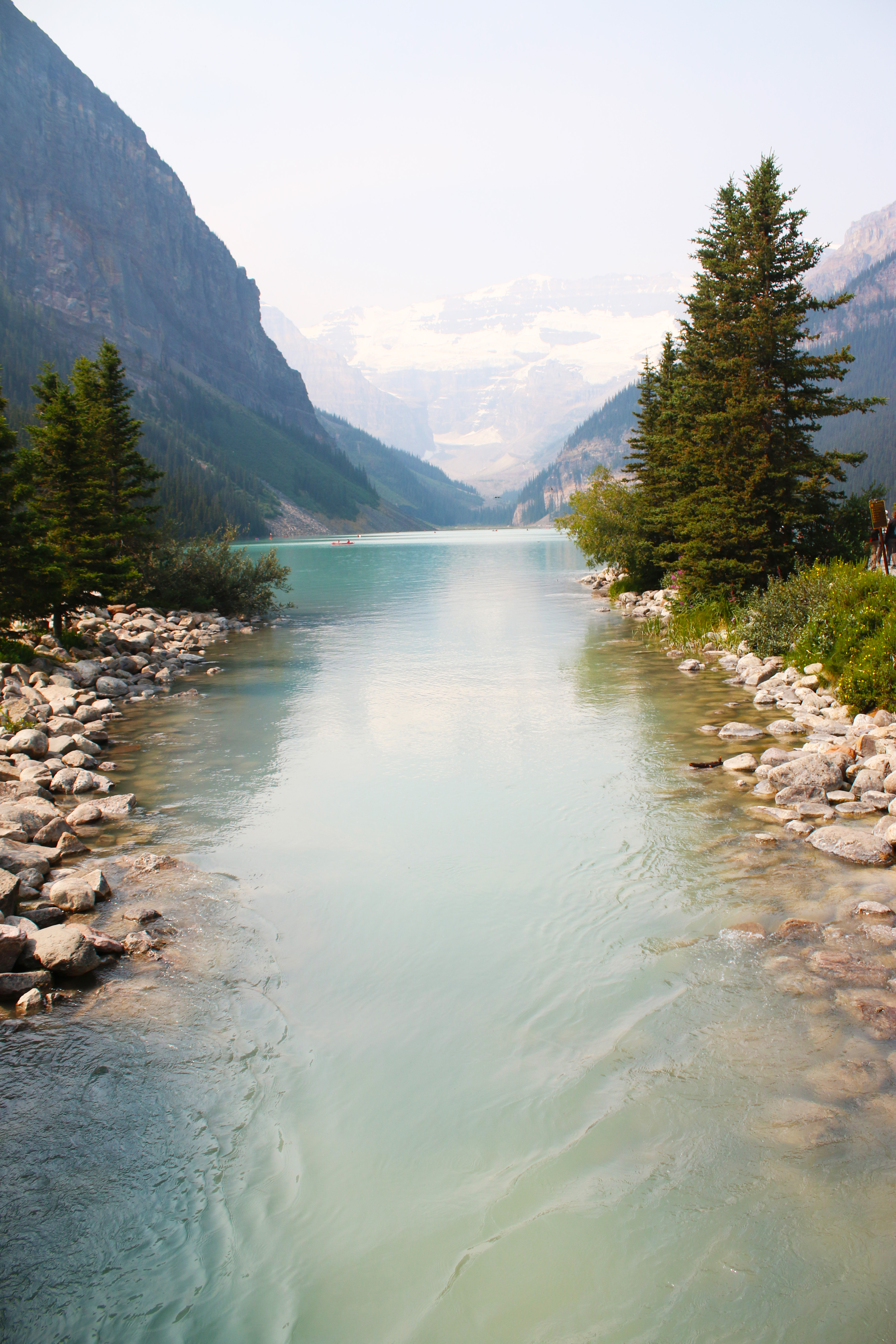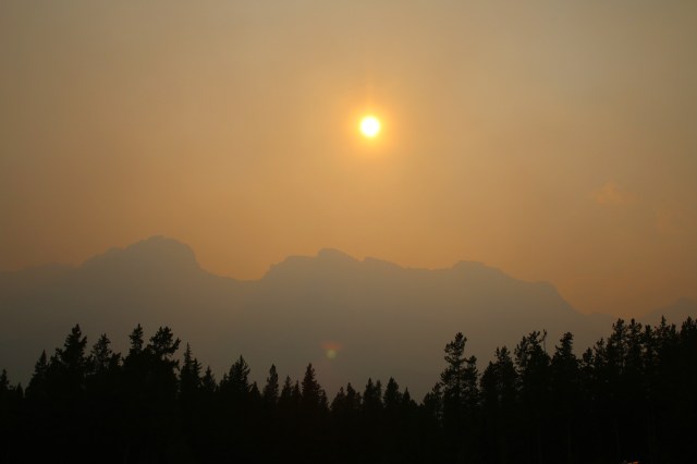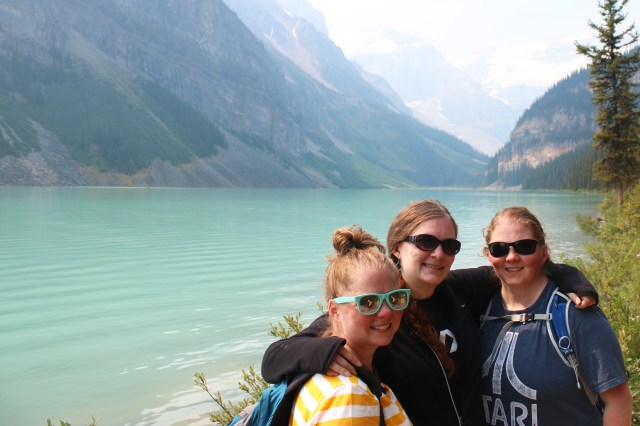 The first weekend in August was my dad’s extended family reunion in Montana, and afterwards a few of my family members decided to go camping in Banff in Canada.  I didn’t make it to the reunion, but I did go to Canada.  My parents and sisters have wanted to go since the last reunion 3 years ago when we went to Glacier (which I loved and was so happy we did that), so it was great to be able to make it there this time.  Banff is amazing!  It is so beautiful!  There are rugged mountains, amazing turquoise lakes and rivers and really cool water falls.  There have been a large number of forest fires around the area (and much of the western half of North America) the last month so the first couple of days were a bit smoky.  But it was still so beautiful and it actually made for some really pretty sunsets.  But I am glad that it cleared up too so we could really see the amazing colors there.