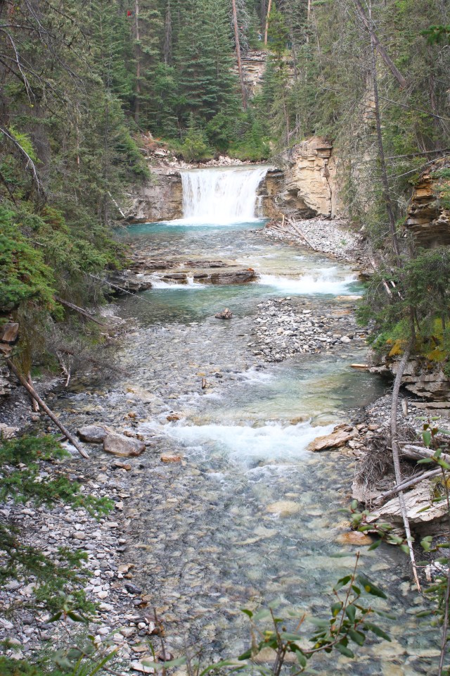Rachel and I flew into Calgary a day before and drove up to the Edmonton LDS Temple and then walked around downtown Calgary that evening.  We drove out to Banff the next day and the rest of the family filtered in from the reunion.  It is the 150th Anniversary of Canada so the park passes were all free.   My favorites in Banff were Morraine Lake, especially climbing the rock pile (despite accidentally wearing flip flops because I thought it was just a view point and the parking was so insane that the car was way to far away to go back and change) and getting the most amazing view of the water up above.  And then hiking Johnston Canyon, with all the waterfalls, and especially being able to go behind one of them, which was my first time ever going behind a waterfall.  Which I totally loved.  On Wednesday, mom, dad, Rachel and I split off from the group and headed up to Jasper for the rest of the week.