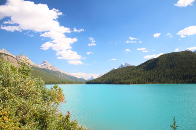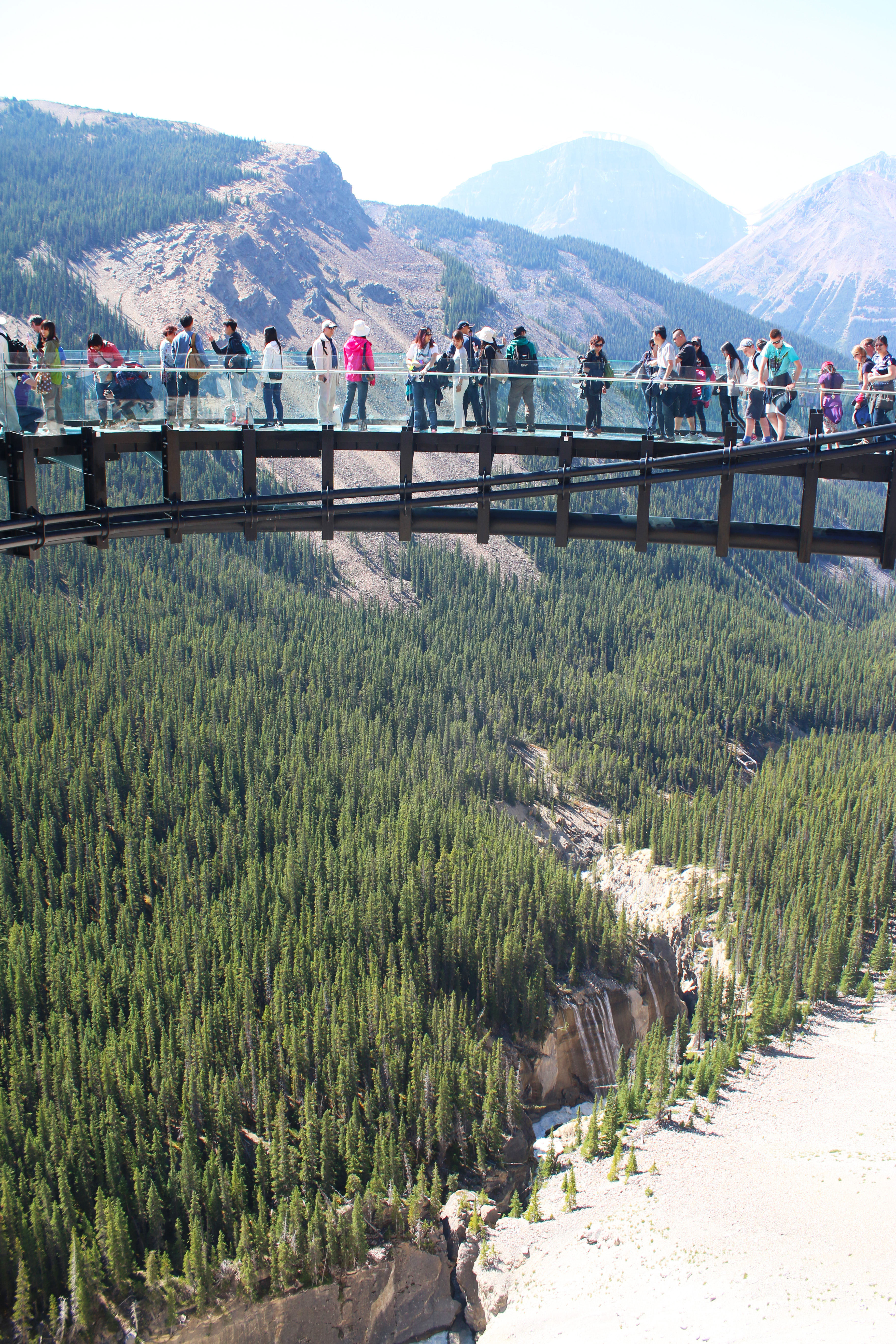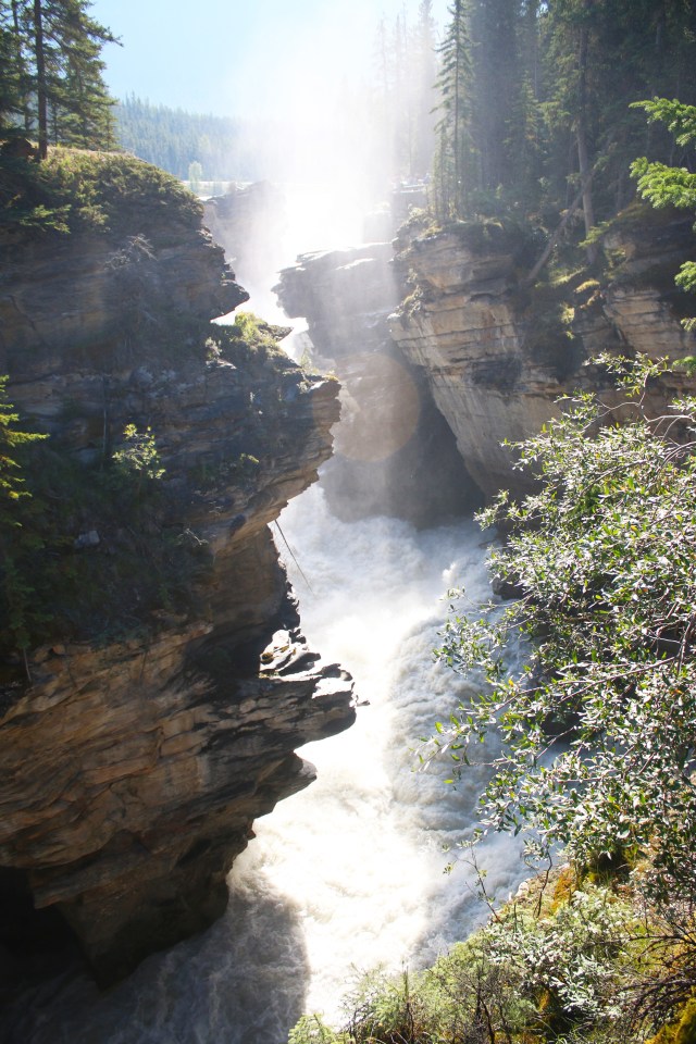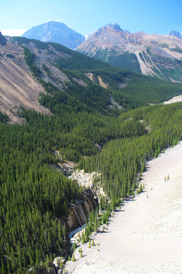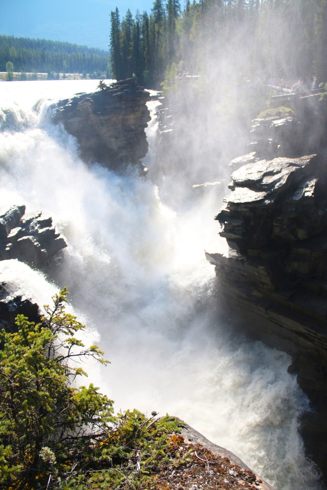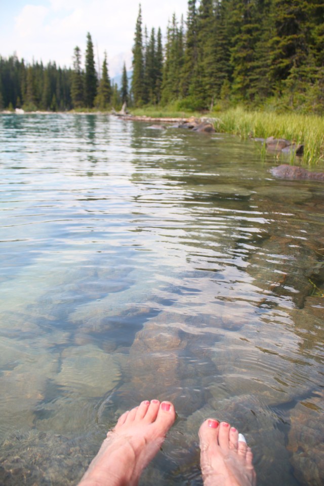 On Wednesday morning after we left Banff we slowly drove to our campsite in Jasper, stopping along the way to do a hike and some shorter viewpoints. We spent the last 2 days in Jasper. We drove around to see different lakes, mountains and waterfalls. And we put our feet in the water any chance we got, after hiking up to a lake, at the stream by a picnic area or the river by our campsite. It felt so good. The water was so cold, especially at the stream where we stopped for lunch one day. It was so cold that our feet started to go numb after 15 seconds in the water. We took the tram in Jasper at sunset, and stopped at the Athabasca glacier and walked out to the glass bottomed skywalk on the way back down. The waterfalls beneath it look like they are coming out of the mountain because of a rock slide a very long time ago that they run through. Mom stayed at the visitor center for the skywalk, which was definitely for the best. It made me a little bit uneasy when first walking out on it, so her screams would probably have been reverberating throughout the whole canyon…