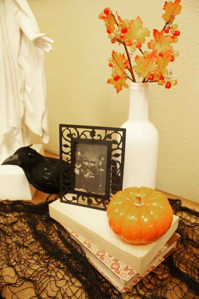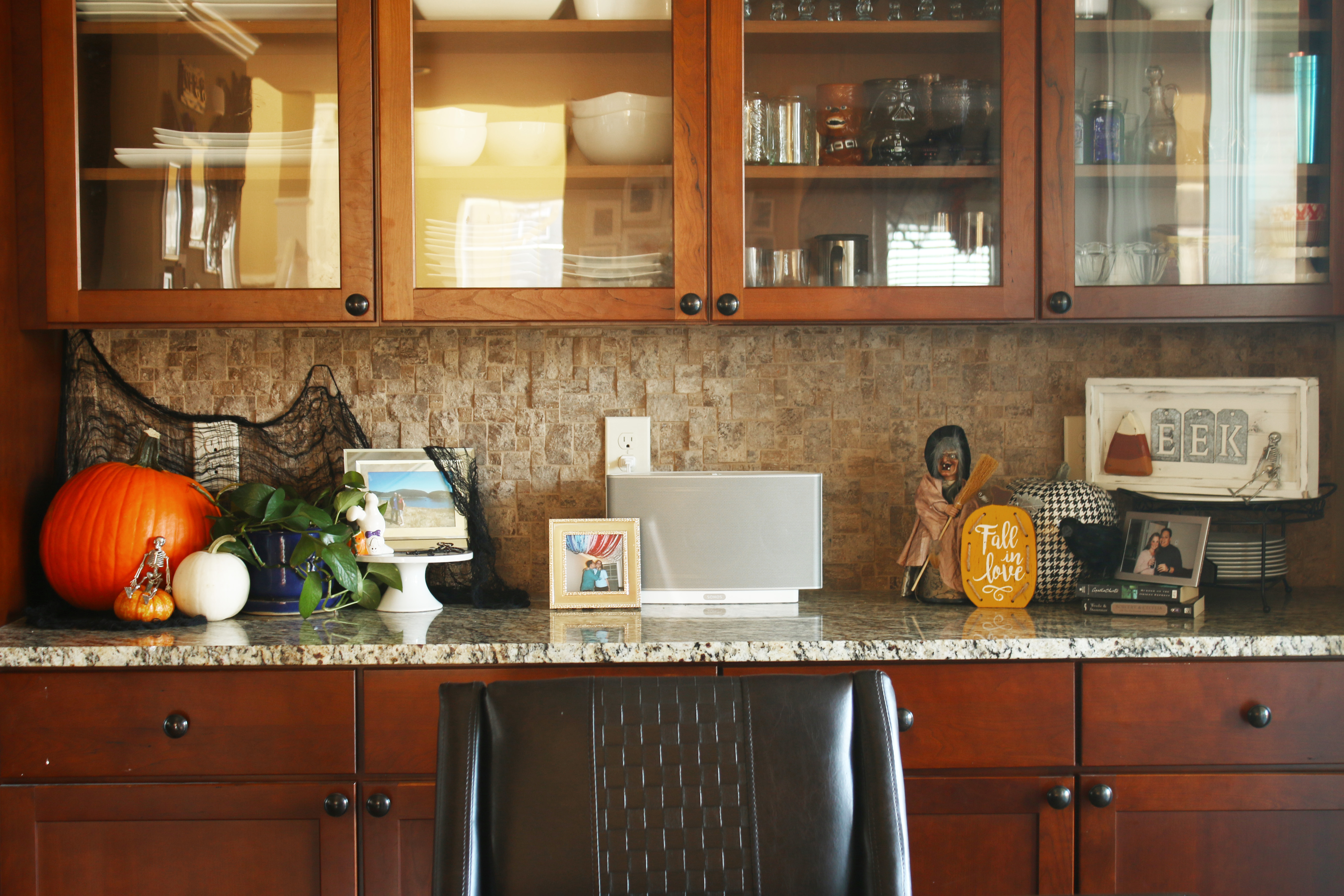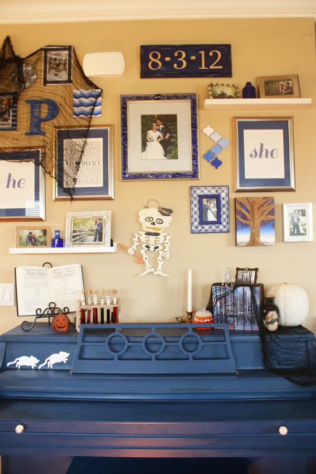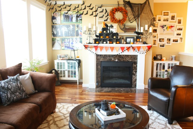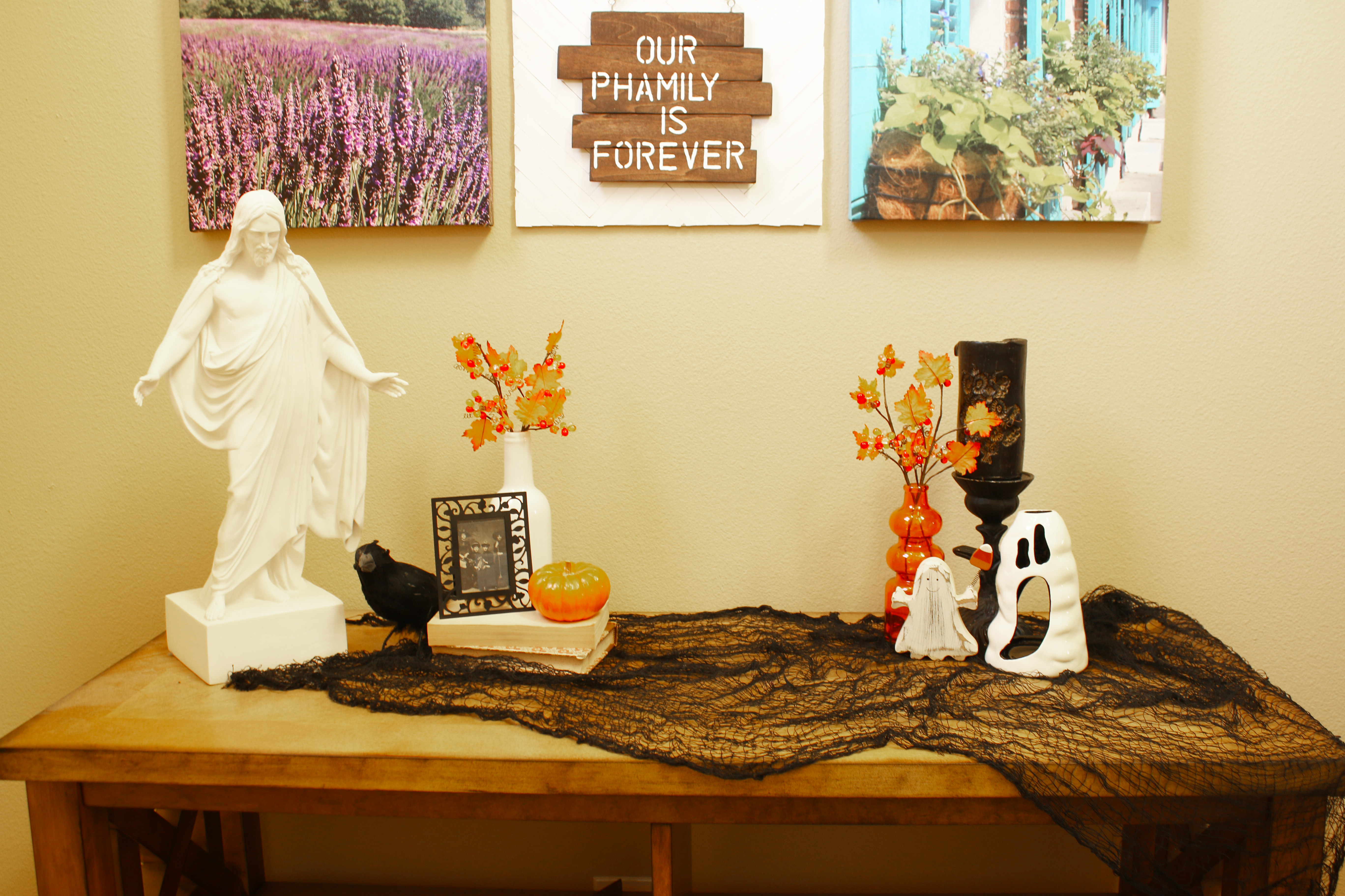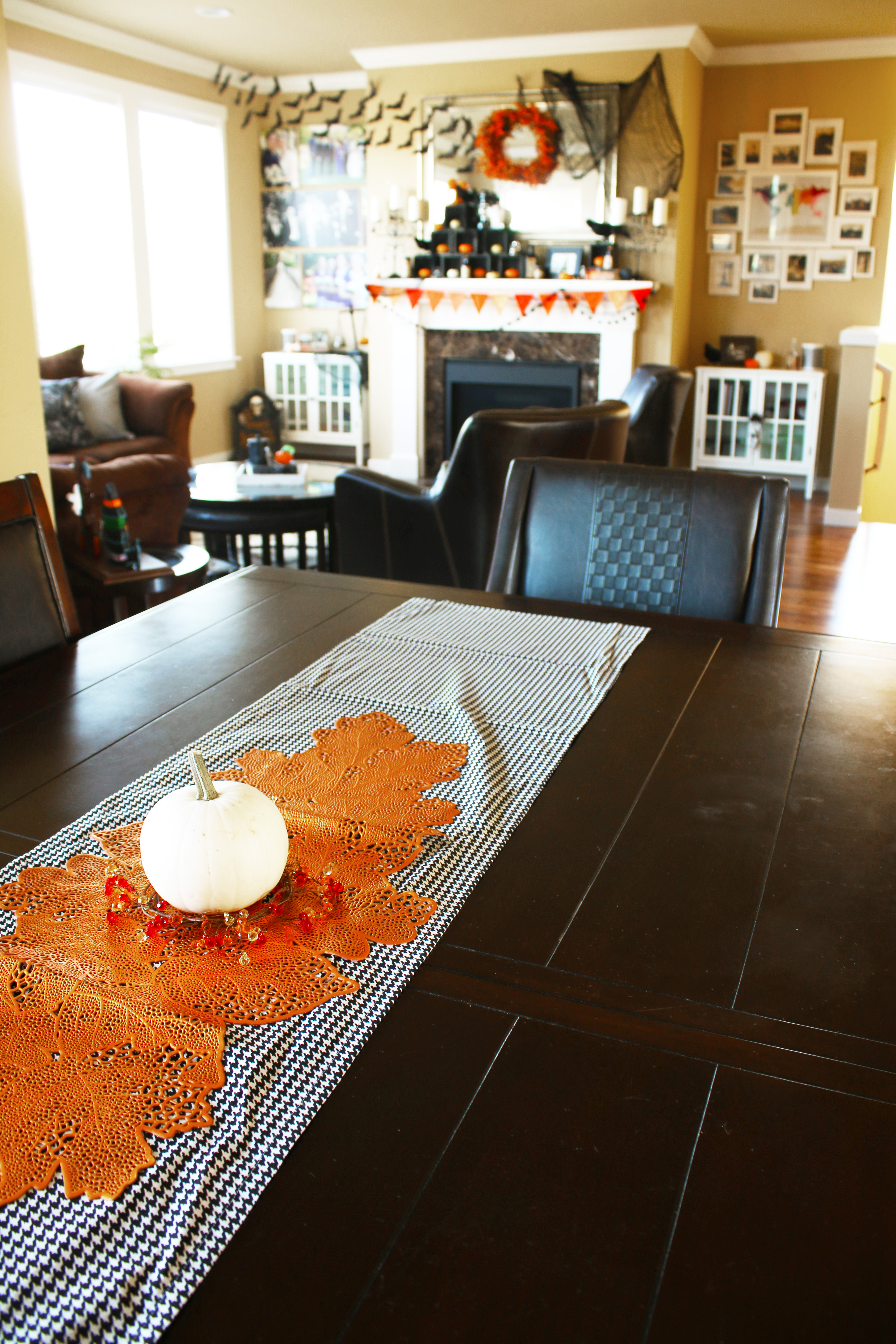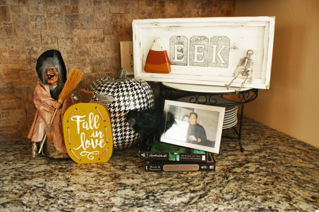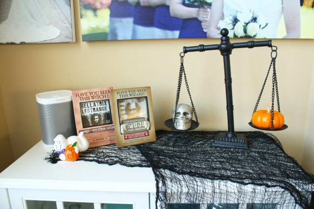 As usual, I am so excited it is October and the beginning of my 3 favorite month’s of the year. I love that my street is lined with the best trees and that I can see the changing leaves from every window in my house! I also really love the Halloween decorations. They are one of my favorites, especially all of the little pumpkins in the black boxes. And of course I love any excuse to incorporate Harry Potter as well. I need to print some pictures of our Halloween costumes from last year for the picture frames we got in Orlando, we were “Ron” and “Hermione”. It was only appropriate that I was listening to “The Order of the Pheonix” while I was putting everything out.