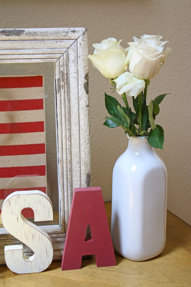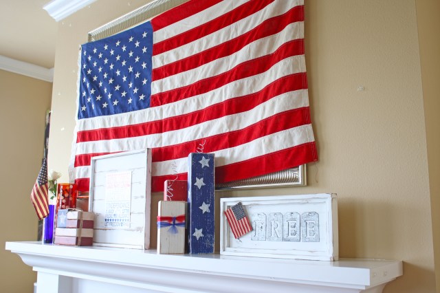 I have a thing for the American flag, I love it (as you can tell by how many of the 4th’s decor items use it…) and I mentioned last year that I hate how every store always sell super cheap plastic ones. I have been searching for a nice fabric flag and can never find anyone that sells them. Then in June I finally made it out to Spokane for “Farm Chicks Show” which I have been wanting to go to for years, and while I was there I found the PERFECT vintage cloth flag and it was in pretty good condition, only a couple small holes. I was so excited. It even has embroidered stars on it. FINALLY my search is complete.