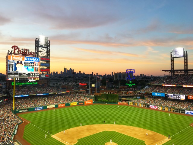 On our second day we got some breakfast at the Reading Terminal Market then went to the Liberty Bell. We were planning on touring Independence Hall at this point, but didn’t realize that tickets go so fast and you have to be in line early in the morning to get them. So we visited the Denver Mint and the Constitution museum and Ben Franklin Square. Then we walked around downtown, to visit Love park and Town hall. That night we went to the Philly’s game, and it had another great skyline view of downtown, behind the stands.