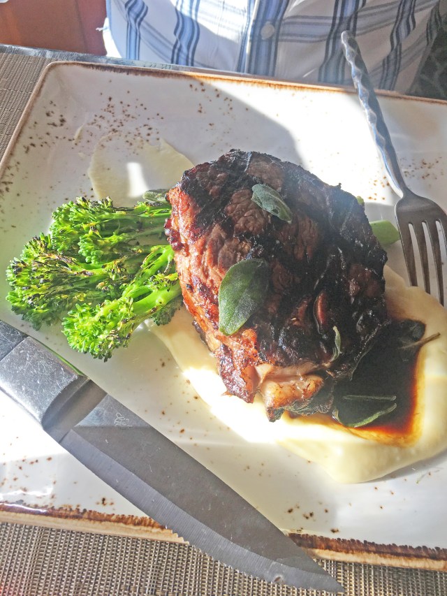 There are a few restaurants we have been wanting to try that some of our friends, Bill and Andrea, introduced us to. We all went to Cafe Juanita in Kirkland when they were here a while ago, and it was the most amazing food either of us have ever had. It was one of 5 on Bill’s list, so we have been wanting to try the other 4 on his list. We chose Bateau and I made reservations for the Saturday after our anniversary, but then I realized that it was the same weekend as Sea Fair and they close the I-90 bridge. So we decided to change our reservations to last weekend and then go to the Dining Room at Salish Lodge on the 4th. We have tired to go to the Lodge multiple times spontaneously, but every time it has been fully booked. So we finally made it, and it was so good. Probably the best pork chop we have ever had in our life. They gave us some sparkling cider to toast with since we were celebrating our anniversary.