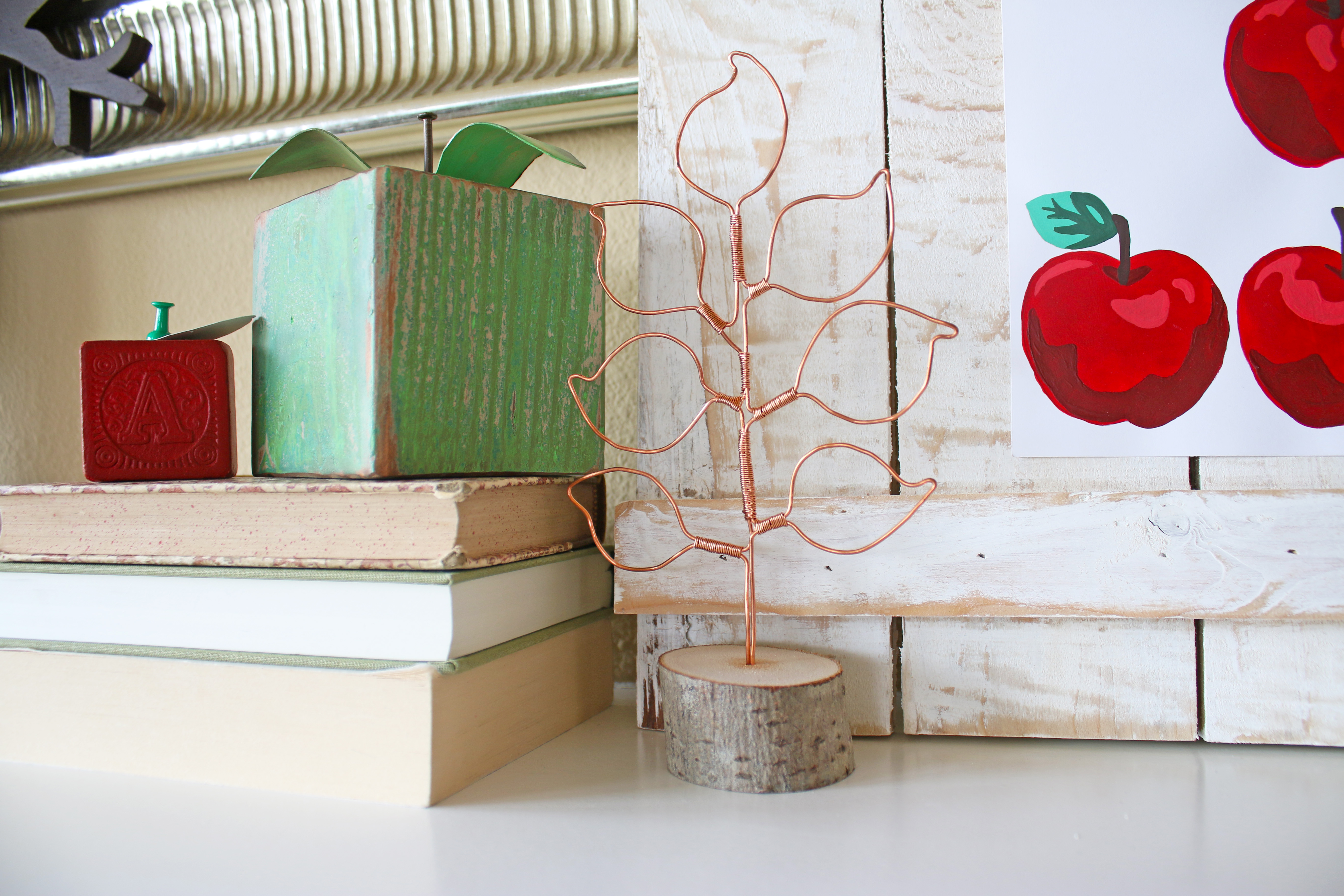 This year I finally updated or finished the projects that I have been meaning to do for the last 3 years for this month’s decorations. I made the wire and bead tree a few years ago, but always felt like it was too big for the size of beads that I got and I finally cut the frame down to a smaller size and I like it so much better now. It was one of those projects that was a huge headache though, trying to get the frame stable. I almost gave up on it. I have also been meaning to make some kind of wreath, but could never come up with an idea that I liked, until I saw the tutorial for this one. I also found the tutorial for the copper wire branches so I made 5 of them too. But I used some sliced wood rounds for the base instead. I really love them and the wreath so much! I am going through a copper obsession at the moment, you know along with everyone else… 😂 And of course Vu’s 3D printer obsession is still going strong, so he made an apple and asked me multiple times if it was going to go in the September decor and then asked for it to be in the most prominent position… 😂