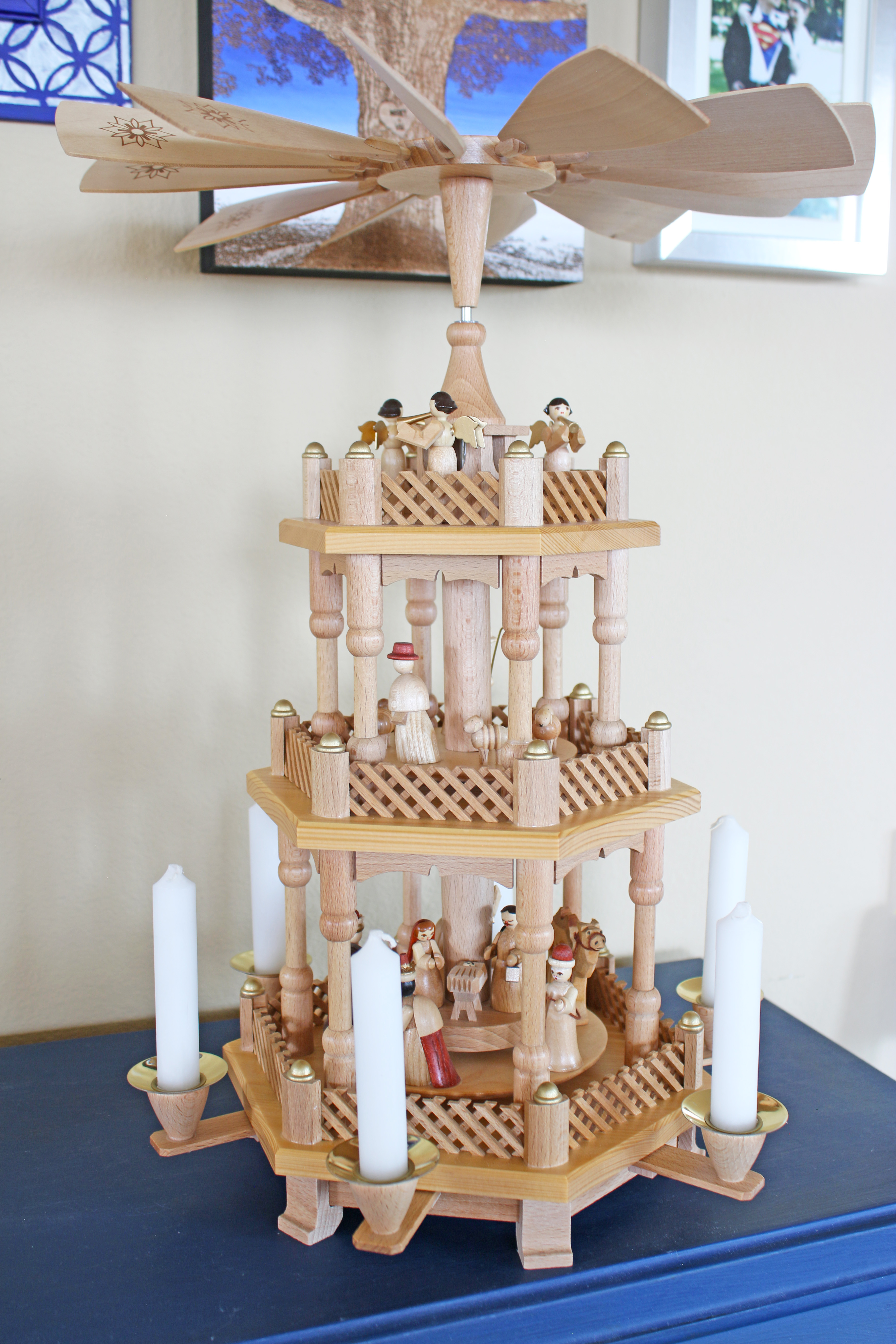 Last year when I was taking down all the fresh garland from the banisters and the dried out branches were breaking off everywhere in tiny little pieces I decided that I was not going to use fresh greenery there again… Then as I was starting to pull out everything this year to put up Vu asked what I was going to put up there and he decided that he wanted the fresh greenery as opposed to the wood stick springs that I have from a few years ago.  This may not see like a big deal, but it is HUGE!  Every single time I put out something living in the decor, from fresh flowers to pumpkins to greenery he ALWAYS dislikes it.  Because you know he has a really strong aversion to having decaying things lying around our house…  so when he suggested the fresh greenery I was completely shocked and of course I had to go with it.  Next year I will try and remember to buy some fake garland in advance to go there since, that is what he really wanted.