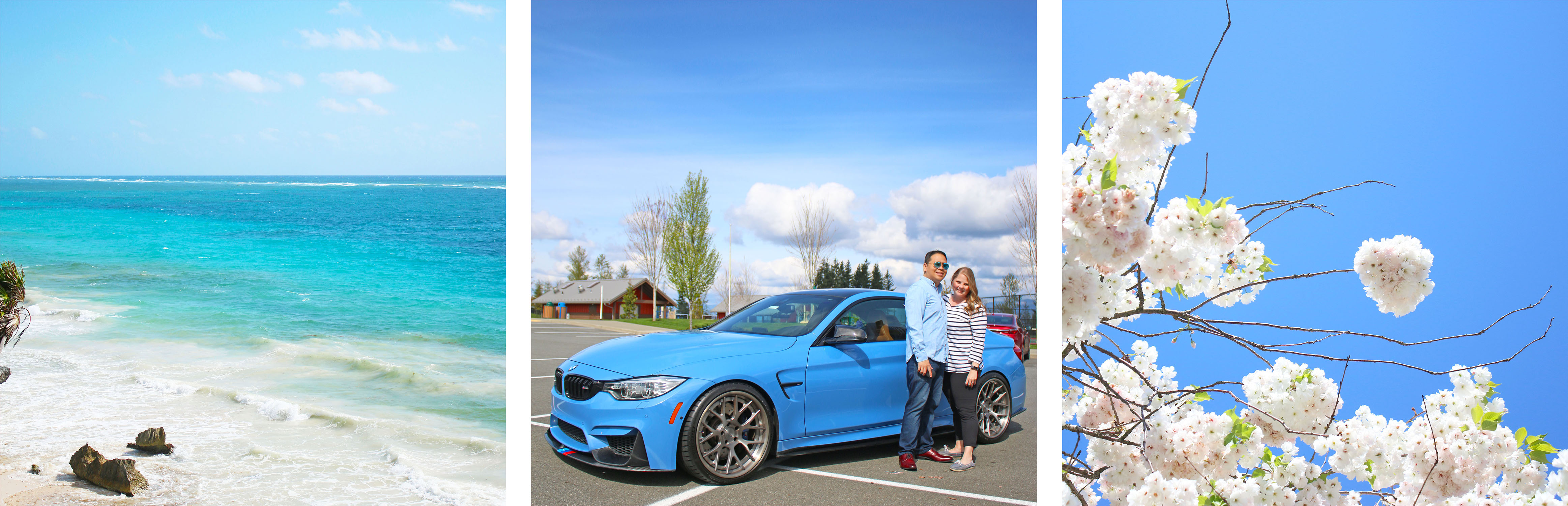 Blue: the beautiful water at Tulum in Mexico, a Sunday drive with Vu – “Blue rides, blue skies and weekend vibes”… 😉 , beautiful clear blue skies and pretty white blossoms.