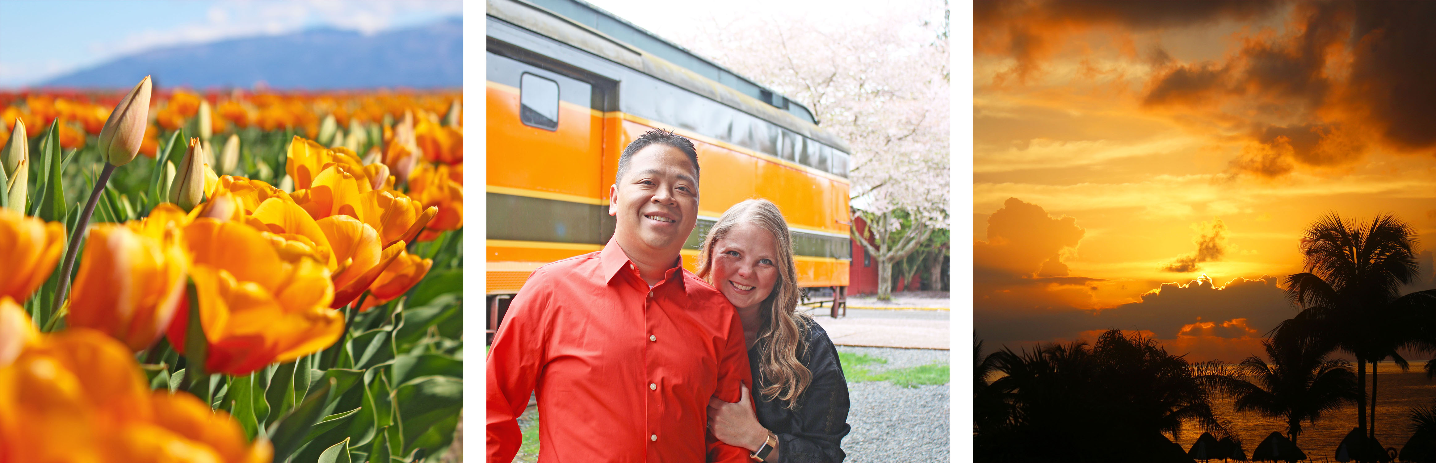 Orange: Skagit Valley Tulip Festival, a Sunday stroll with Vu to see the cherry blossoms in downtown Snoqualmie, an amazing Mexico sunrise.