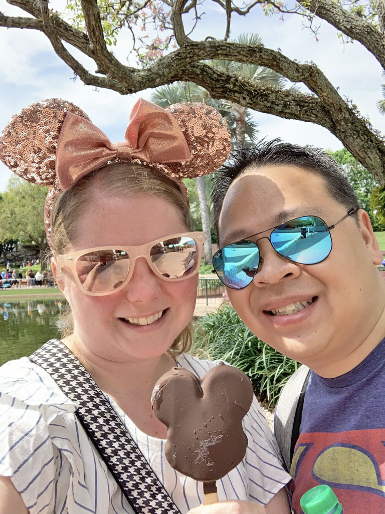 The last theme park we did in Orlando was Epcot. Vu loves this one because he loves going to all the different countries and trying all the different foods. This time around we found a blog online that recommended all of the best things to eat and so we tried of few of those suggestions and they were all sooo good! We got the General Tso’s Chicken and Braised Pork Belly Steamed Buns at the Nine Dragons in China, the Hummus fries at Spice Road Table in Morocco, and the welsh pub burger at the Rose and Crown in the United Kingdom. We really wanted to try the poutine at Le Cellier in Canada, but you have to have a reservation to go there, and we didn’t plan it in advance. Next time! I was surprised how much I liked the Hummus fries, because I don’t actually like Hummus. But they were so good. One of my cousins joined us again and that was really fun. We just happened to go during the flower and garden festival so they had all of their beautiful character topiaries out and all sorts of flowers. I loved that we timed it to see them. I especially loved the Lion King and Beauty and the Beast ones. And I was finally able to go to the Soarin’ ride, which I have never yet done at Disneyland or Disneyworld, and that was my favorite ride at Epcot, I loved it! It was a really fun and relaxing week in Orlando. In between all of our park days we spent some time with Vu’s family which was really great too, and I had so much fun doing Disney with my cousins!