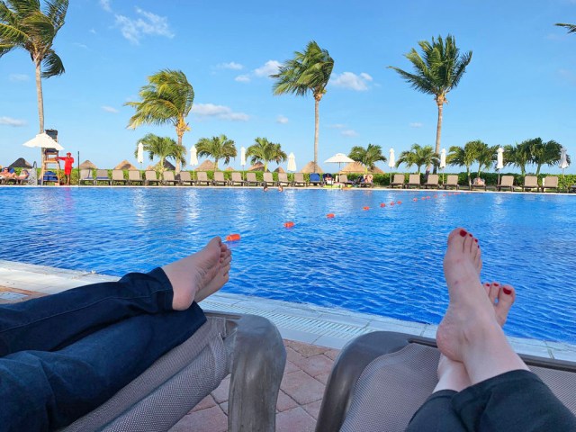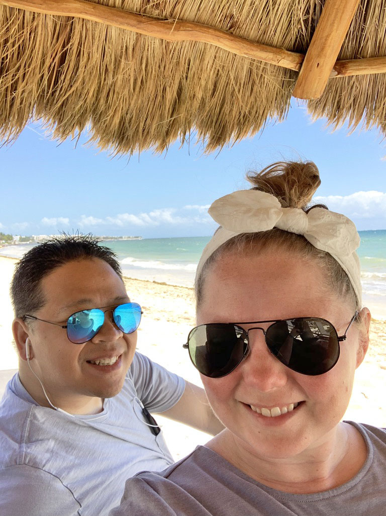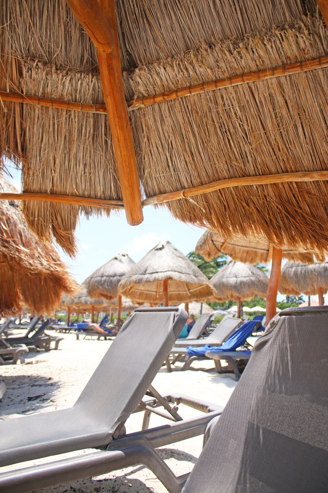 After spending the week in Orlando, we flew straight to Cancun, Mexico. While Vu was on his vacation between jobs he really wanted a beach vacation where he could just sit on the beach, relax and read, and one of his requirements for where we stayed was that it be an all-inclusive resort. A friend recommended a travel agent to help us and she was really great. She found a great spot and planned it perfectly for exactly what we wanted. We had an amazing view from our balcony looking out over the tropical trees and ocean, and little covered huts on the beach.