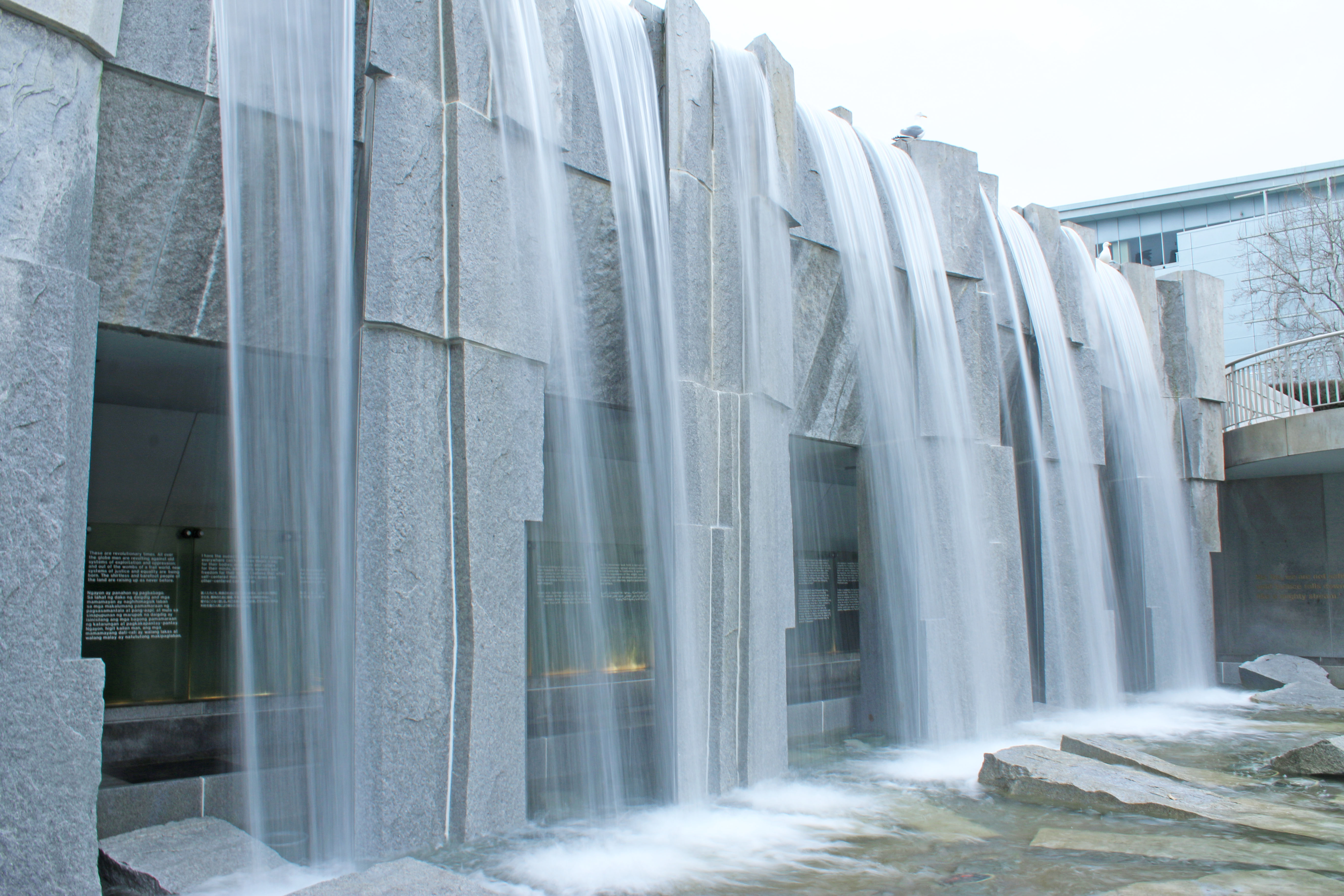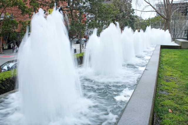 I stopped at City Lights Book store and browsed all the little nooks of the store before heading down to the waterfront to the Ferry building. I tired a few spots I found recommendations for, and got some bread and cheese, and then ate on the benches out on the dock. Then it started to rain and I got really cold, so I got some some hot chocolate from Blue Bottle to warm up on my way back to the hotel. I passed some really cool water fountains on my way, I love stumbling onto fountains. The forecast for the week was a lot of rain, which being from Seattle I am totally good with, and that really helped me because it kept the temperature nice and cool for me. And it didn’t actually end up raining that much while I was out and about. After resting a little while at the hotel, I wandered out to explore City Hall and the Library which were close. That night we went out to get some really good Ramen with Vu and one of his old coworkers that was in town for the day.