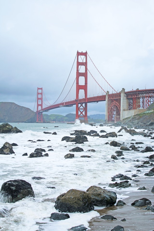 On my fourth day in San Fransisco, after the Conservatory of Flowers, I took another Uber to the Golden Gate Bridge. When I was in San Fransisco last time, I really wanted to go to Marshall’s beach, but it was at the end of long day and Vu really wanted to just get to the hotel, so he gave me 20 minutes to get down there on my own. Which meant I was super rushed and tried to do it as quickly as possible and didn’t see any signs to get down, so I ended up scaling down the cliff side following other people who had done it. Well it was not my favorite thing at all, so this time I had plenty of time and was able to actually find the real trail down. So much nicer that way. It was in the afternoon at high tide and there was a storm rolling in so there was almost no one on the beach. My kind of perfect. It was a pretty little hike down to the beach too, with great views. It started raining and got REALLY windy right when I got back up to the top, so perfect timing again and I just went back to the hotel.