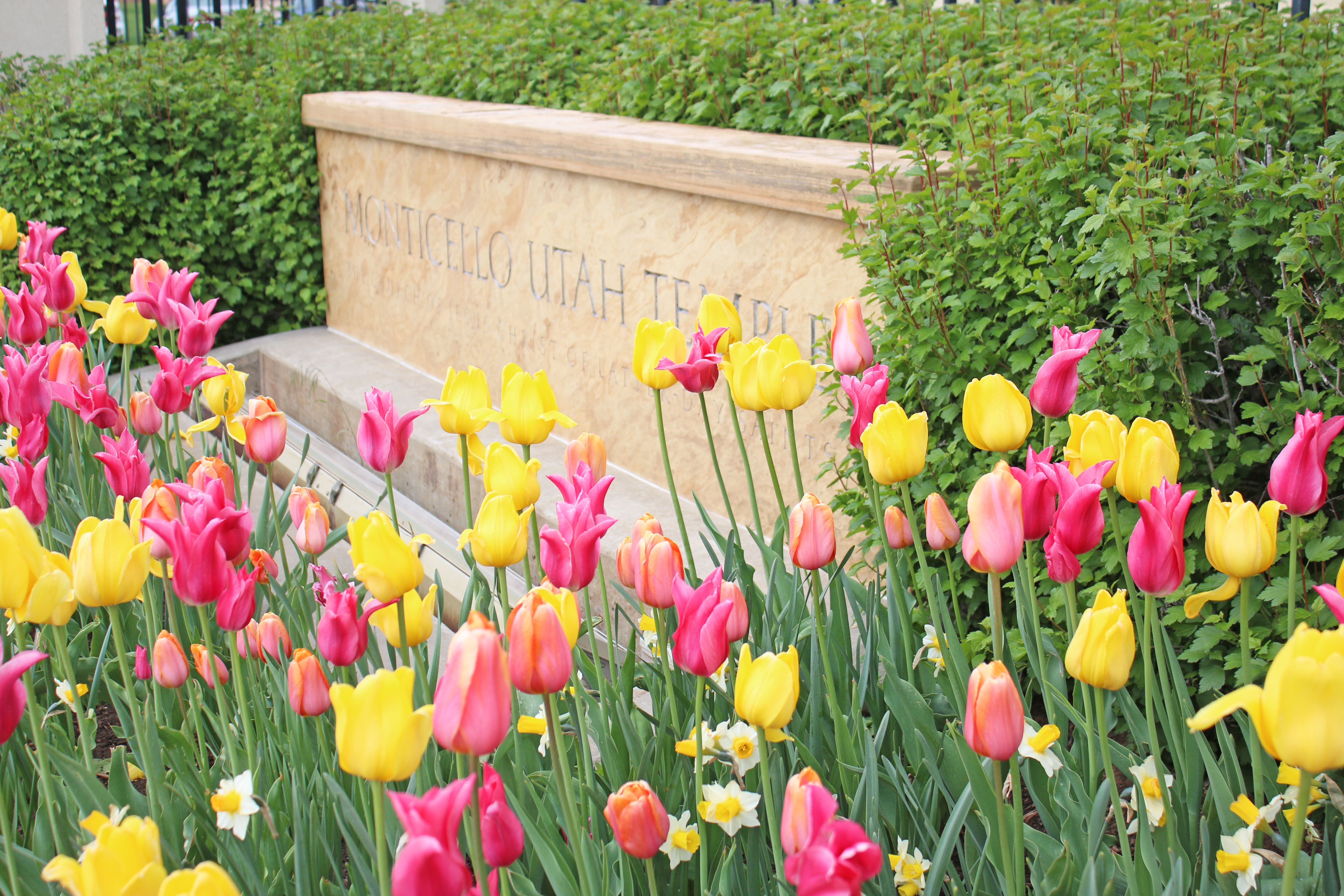 The next day we went to Arches. I have been before, but never hiked Delicate Arch, so that was the first thing we did and it was the perfect day for it. There is almost no shade on the hike, but it was a nice cloudy day, without ever raining. My ideal hiking conditions! 🙂 We went to a number of the other arches after that. I really love this park, it is so pretty, and I especially loved all of the dessert wildflowers that we saw this time. The next morning we drove back up to Salt Lake and on the way we went to the Monticello and Payson LDS temples. I have been to the Payson temple before but it was my mom’s first time. It is one of my favorites, the tall stained glass windows are all so pretty. The next day we went to the Provo City Center temple, another favorite that my mom had not been too before. There were so many less people outside this time than the last time I was there, it was so much easier to take pictures. My mom then dropped me off at one of my friends houses for a few hours, and it was so fun to see her. The next day another cousin of mine got married. I loved the flowers and cake that she chose, they were so pretty. After the reception, I packed up and went to the airport where I flew to Boston to see my sister.