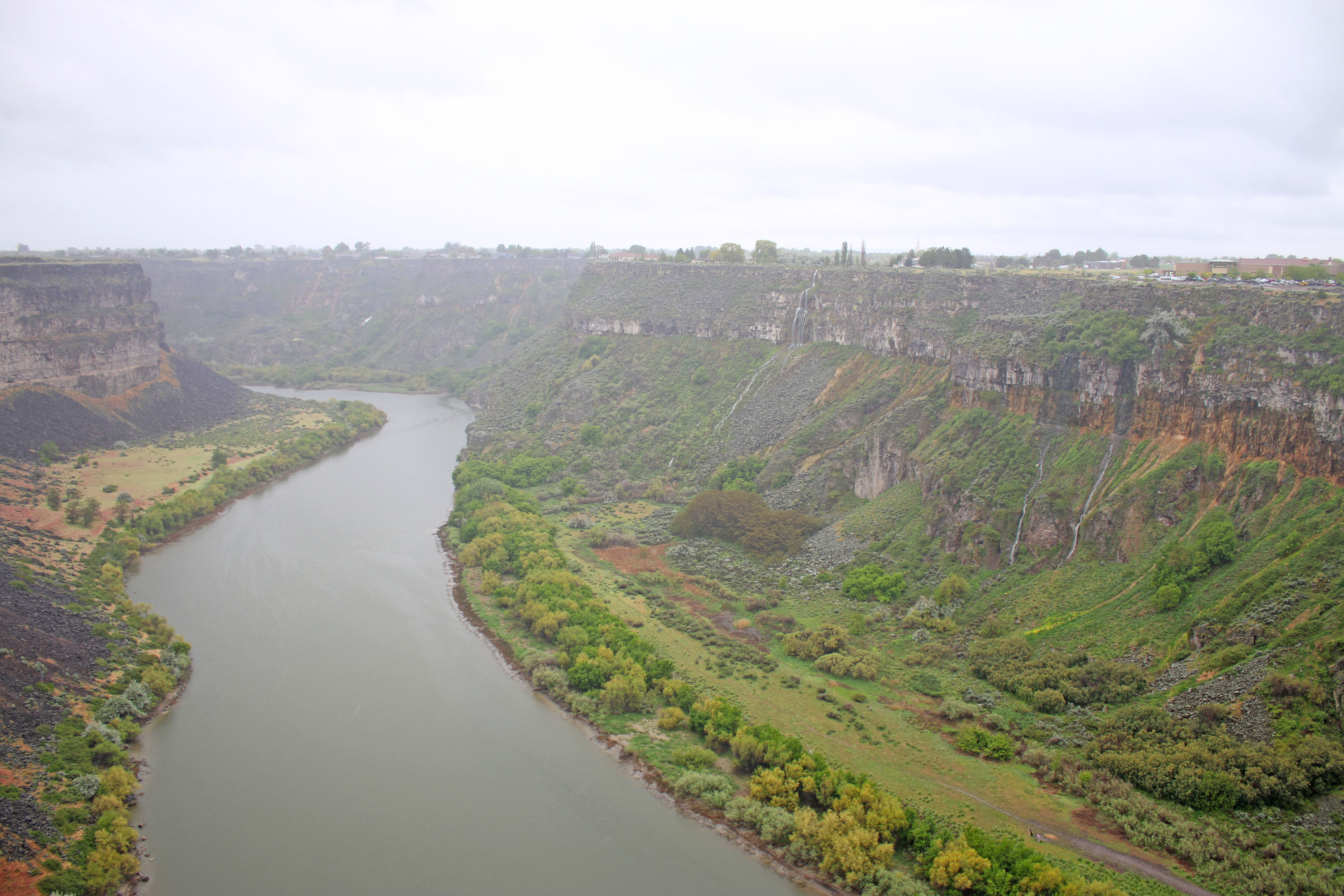 My brother got married this summer, and back in May my mom wanted to throw a little family bridal shower for my future sister in law in Utah so we took a little road trip out there. I have done the drive a few times, but always later in the summer and I loved seeing all of the countryside that I normally see all dried and brown, all green. It rained pretty much the entire drive down, and for most of our time in Utah. It was very unusual to have so much rain, and I loved it. I thought it was so pretty. We stopped for the night in Idaho Falls and stayed with one of my cousins. Idaho Falls has the prettiest bridge overlooking the river. I loved all the little waterfalls coming off the cliff sides from the rain.
