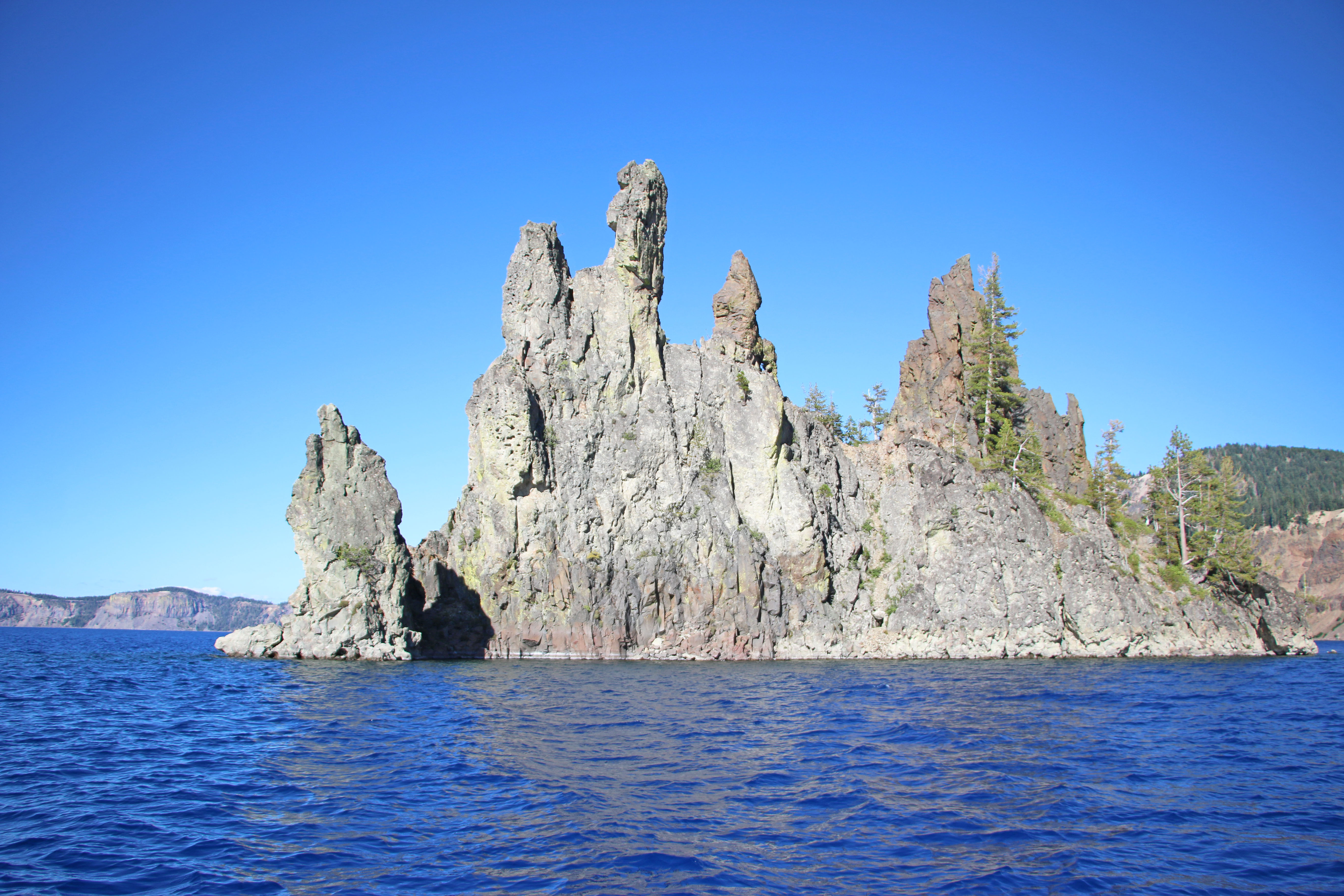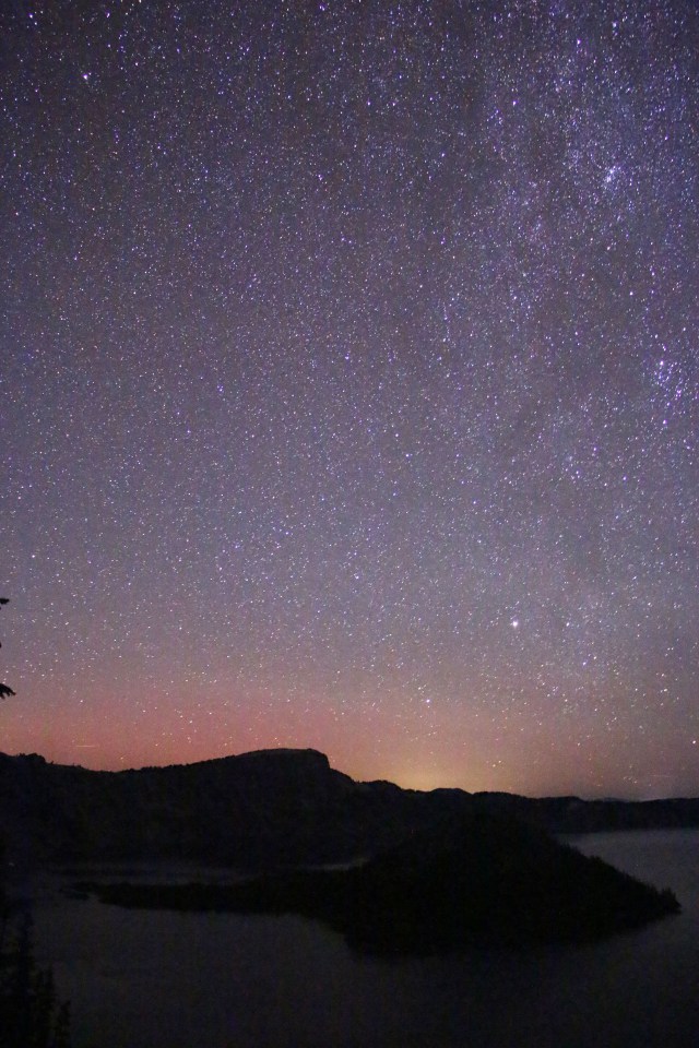 We stopped at a campsite just north of the park on Thursday night and then continued down to the park on Friday morning. We set up our campsite then drove around the lake to take the boat tour. It was so interesting to learn about the lake. The thing I found the most interesting was why the lake is so blue. In addition to being super clear, it is because it is so deep that all the other colors are absorbed into the depths of the water so blue is the only one left to reflect back. That is so crazy to me. They drove us up close to the shore and the water was so clear we could see the rocks below. They looked they were just about 10 feet down, but the Ranger said they were about 40-50 feet down. That night Rachel, dad and I went out stargazing. It was so beautiful. It was so clear the whole time we were there so we ended up going stargazing every night, although after the first night we just walked over to the amphitheater in the campground.