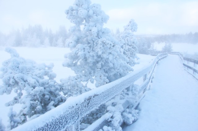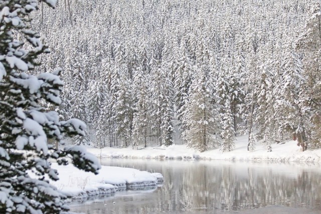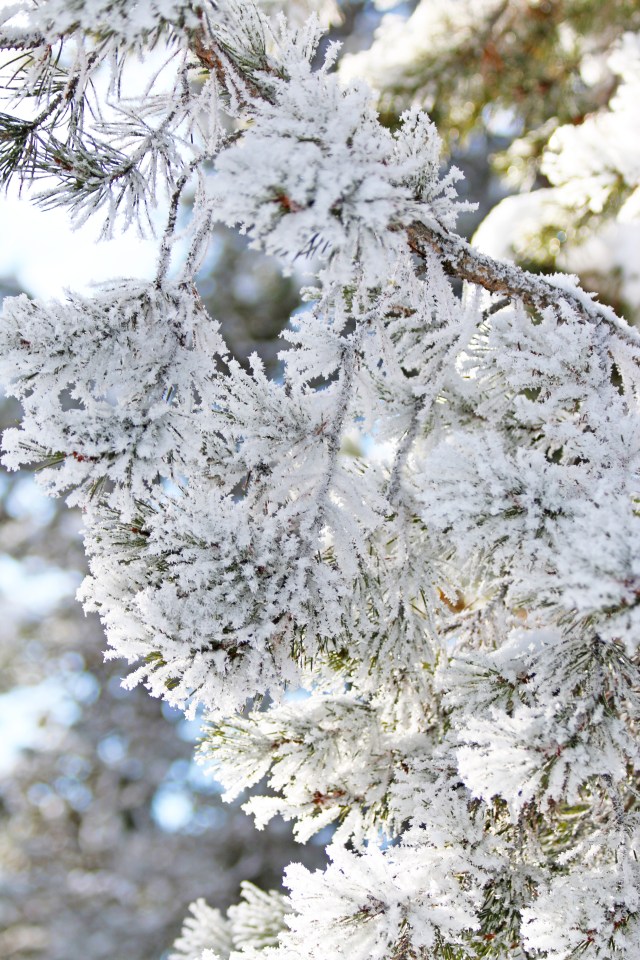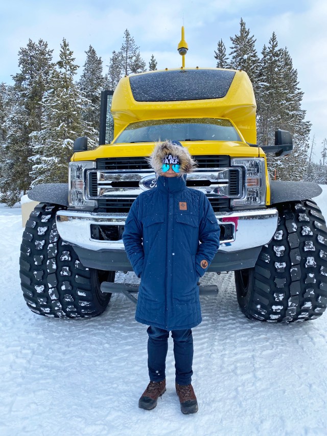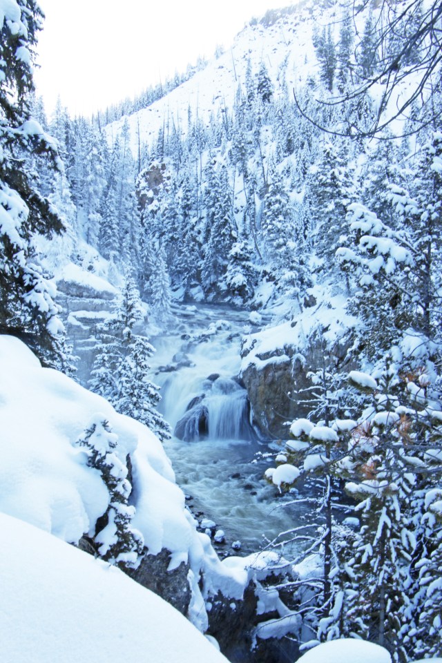 Island Park is very close to West Yellowstone, so we went to the Grizzly and Wolf discovery center in town, went out and cut down our own Christmas tree, drove out to different spots around the house to see a moose and a whole bunch of swans, went snowshoeing up the mountain behind the house, and on our last day there we took a tour of Yellowstone park. I think it was all of our favorite thing. You can’t drive into the park in the winter, so you have to go with a tour in a snow coach. We saw some animals and there was a lot of snow and it was so cool so see all of the geothermal features in winter. I loved all of the different ways the snow/frost covered the trees and things. Even the snowflake’s were so pretty. I loved being able to see everything with almost no crowds. It was perfect timing that I had just visited this past summer, so it was all fresh and I could see the same things in summer and winter. I love that kind of thing.