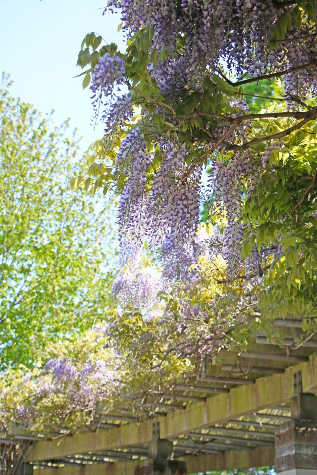 With social distancing and the quarantine going on this spring, I tired to enjoy as much of the beautiful changes I love so much from our limited capacity. Trying to take in the budding leaves and blossoms on my drive to the grocery store and enjoying our cherry blossom tree (ours being one of very few houses in the neighborhood that has one) and the view of the mountains from our street and bedroom window. In addition to this, when my sister moved into her apartment last fall we noticed a huge Wisteria pergola at a park close by and were very eager to see it in full bloom. Fortunately our restrictions started to lift just in time, and the park opened up right when it started blooming. And let me tell you, it is amazing! A beautiful circle pergola right next to a small lake. Absolutely perfect!